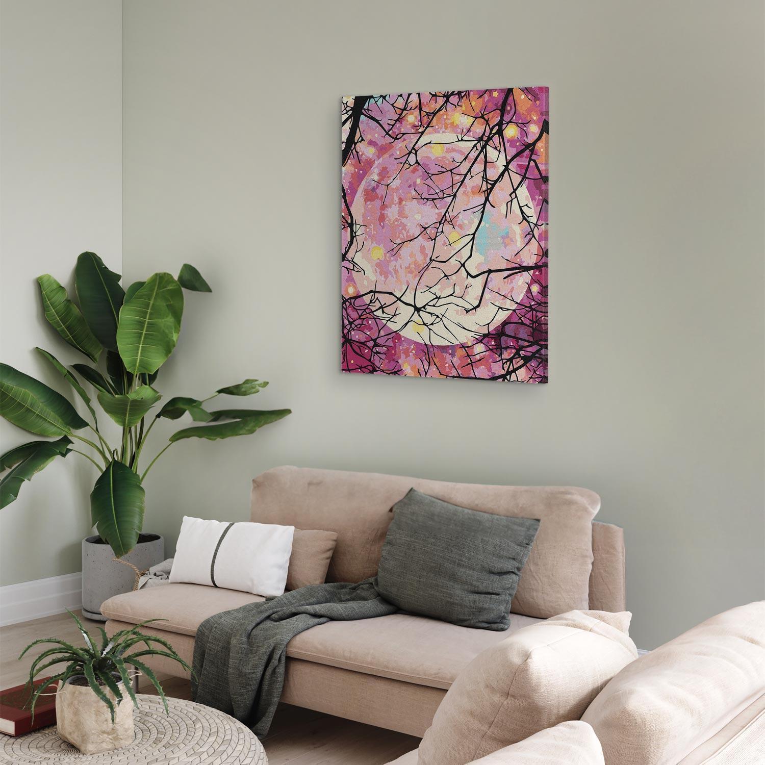 Du brauchst keine zusätzlichen Rahmen. Die Leinwand ist bereits über einen Webstuhl gespannt, der aus natürlichem, massivem Holz gefertigt und mit Klammern befestigt wird. Bemale auch die Seiten und Dein Bild wird auch modernes und modisches Aussehen haben.