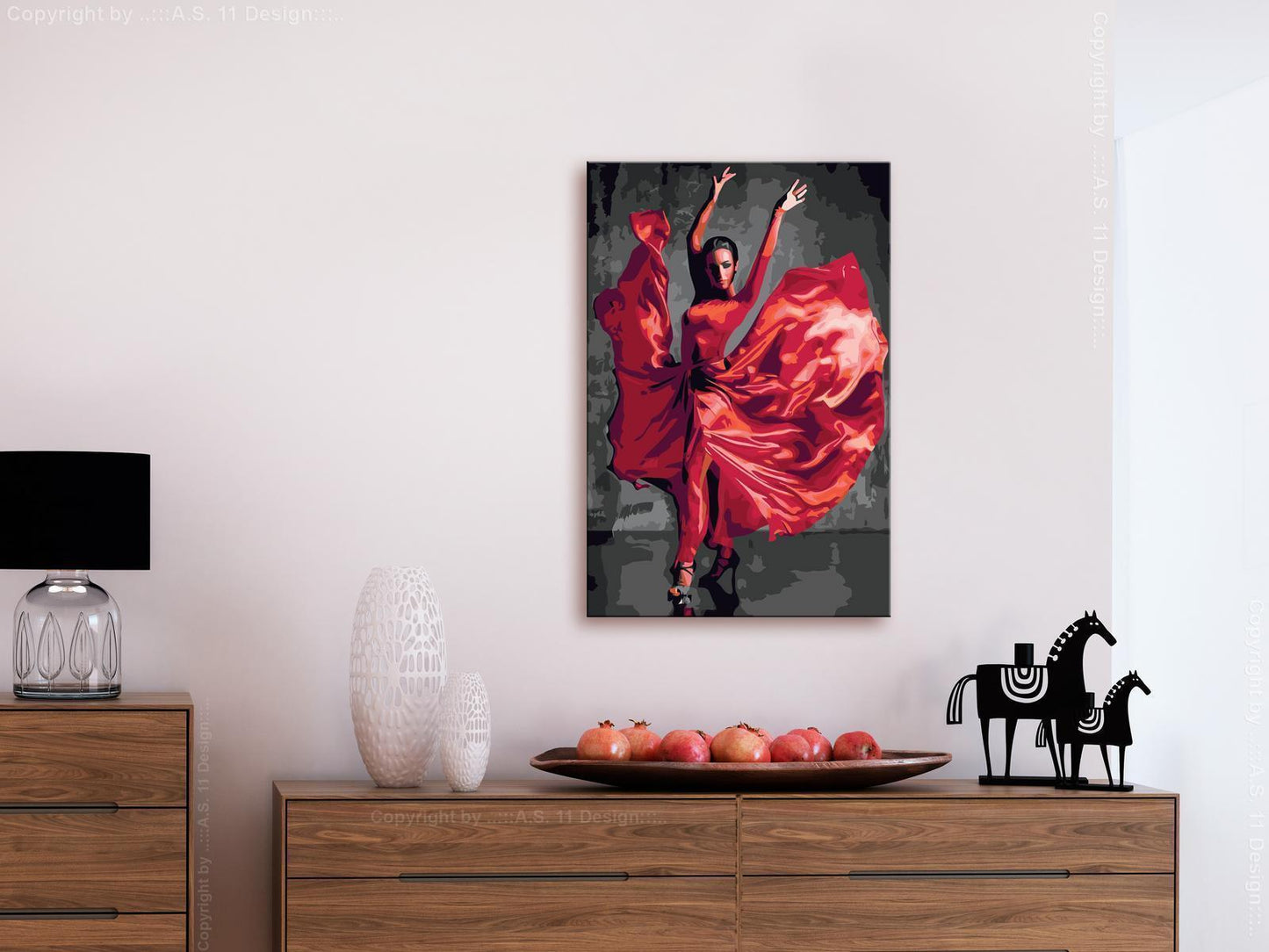 Wandbild zum Ausmalen - Die Kraft des Tanzes | Frau im roten Kleid