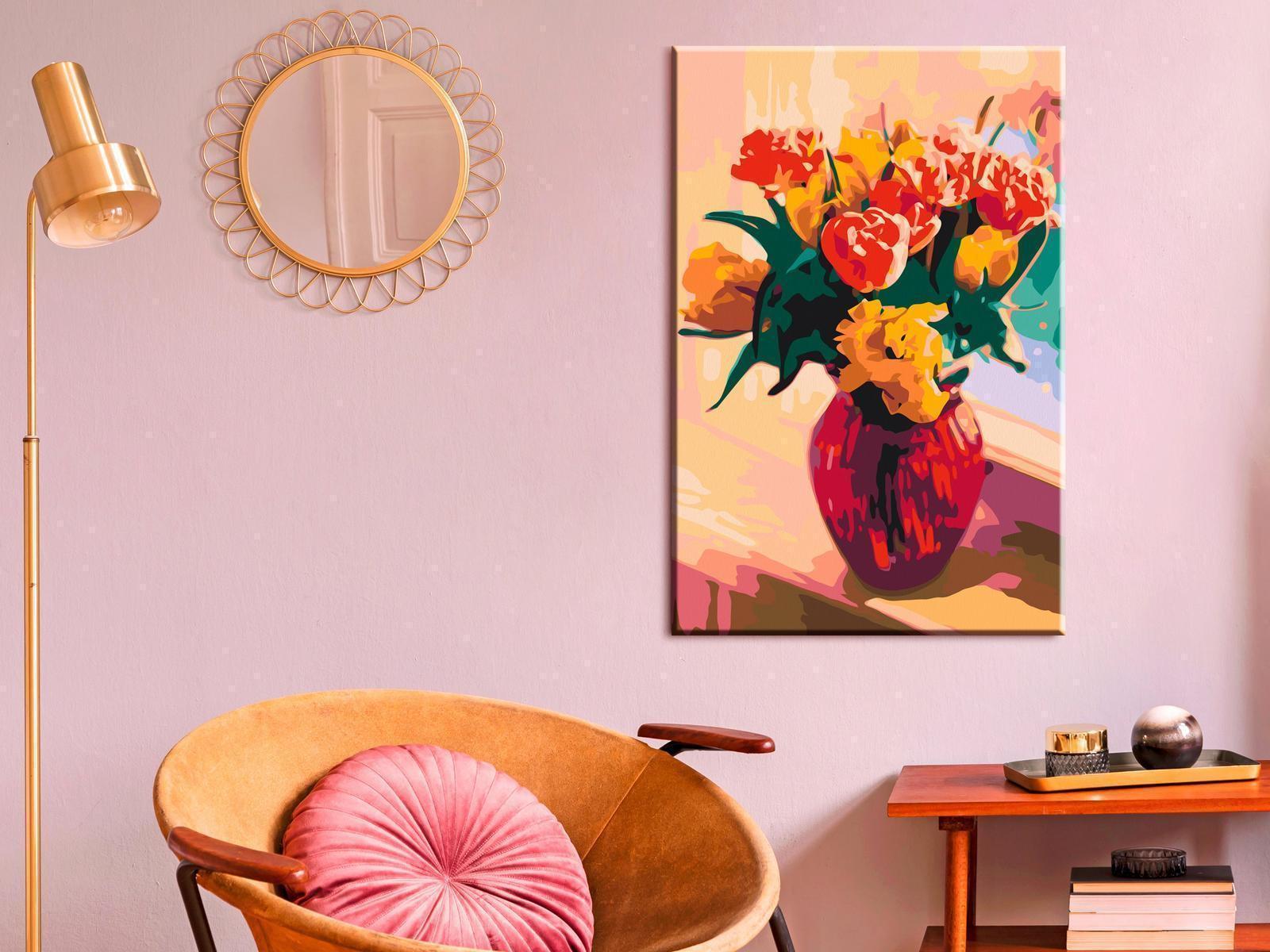 Suchst Du nach einer Möglichkeit, dich kreativ zu entspannen? Hast Du Lust auf ein einzigartiges Abenteuer, zu dem du auch deine Liebsten einladen kannst? Und gleichzeitig deine Kreativität erwecken und sich wie ein echter Künstler fühlen? Nichts einfacher! Entdecke unser neuestes Hit für Hobbyzeit - Malen nach Zahlen. Ein buntes Muster zum Bemalen "Malen nach Zahlen - Tulips in Red Vase" Malen nach Zahlen ist eine ungewöhnliche Idee für die Freizeitgestaltung. Malen nach Zahlen "Malen nach Zahlen - Tulips in Red Vase" ist eine Aktivität für Menschen in jedem Alter. Perfekt für Hobby-Maler und perfekte Wanddekoration.