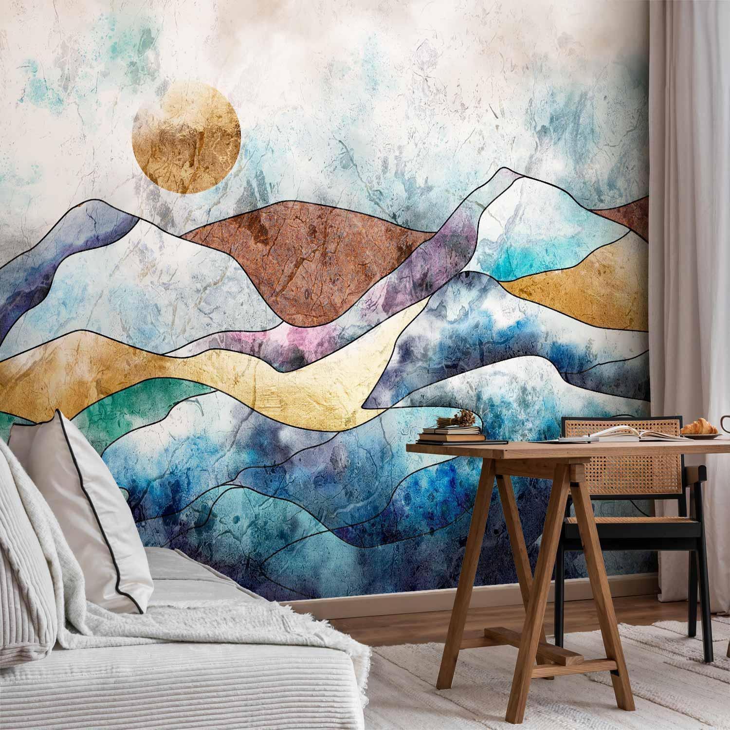 Fototapete "Fototapete - Stained Glass Landscape" ist ein hochwertiger Digitaldruck, der ein qualitativ hochwertiges Produkt und eine einfache Montage garantiert. Fototapete Schlafzimmer ist eine Revolution in der Wandgestaltung. Wählen Sie das passende Universalmotiv für Ihr Schlafzimmer und genießen Sie jede Nacht einen einzigartigen Ausblick. Sie können die Größe der Dekoration an Ihre räumlichen Gegebenheiten anpassen. Außerdem können Sie das Material und die zusätzlichen Effekte wählen, die auf der Fototapete Schlafzimmer zu sehen sind. Ähnliche Motive, die Sie im Schlafzimmer verwenden, können auch in der Küche eingesetzt werden. Die Fototapete Küche eignet sich auch gut für das Schlafzimmer und das Wohnzimmer. Sie können Ihre Wanddekoration nach Belieben konfigurieren und sie so anpassen, dass sie perfekt in jeden Raum passt.