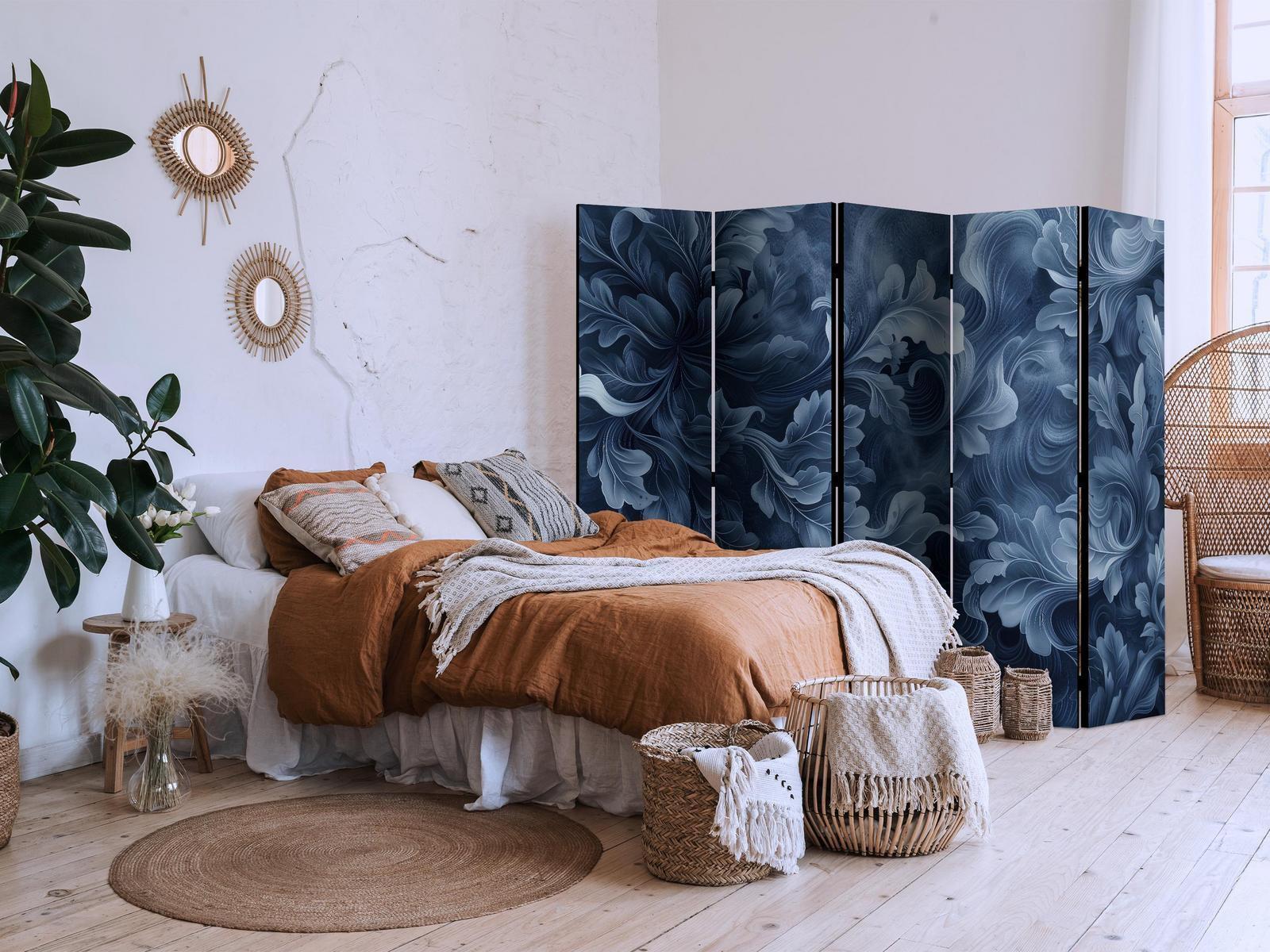 Paravent "Paravent - Abstract Ornaments - Dark Blue Victorian Leaves"