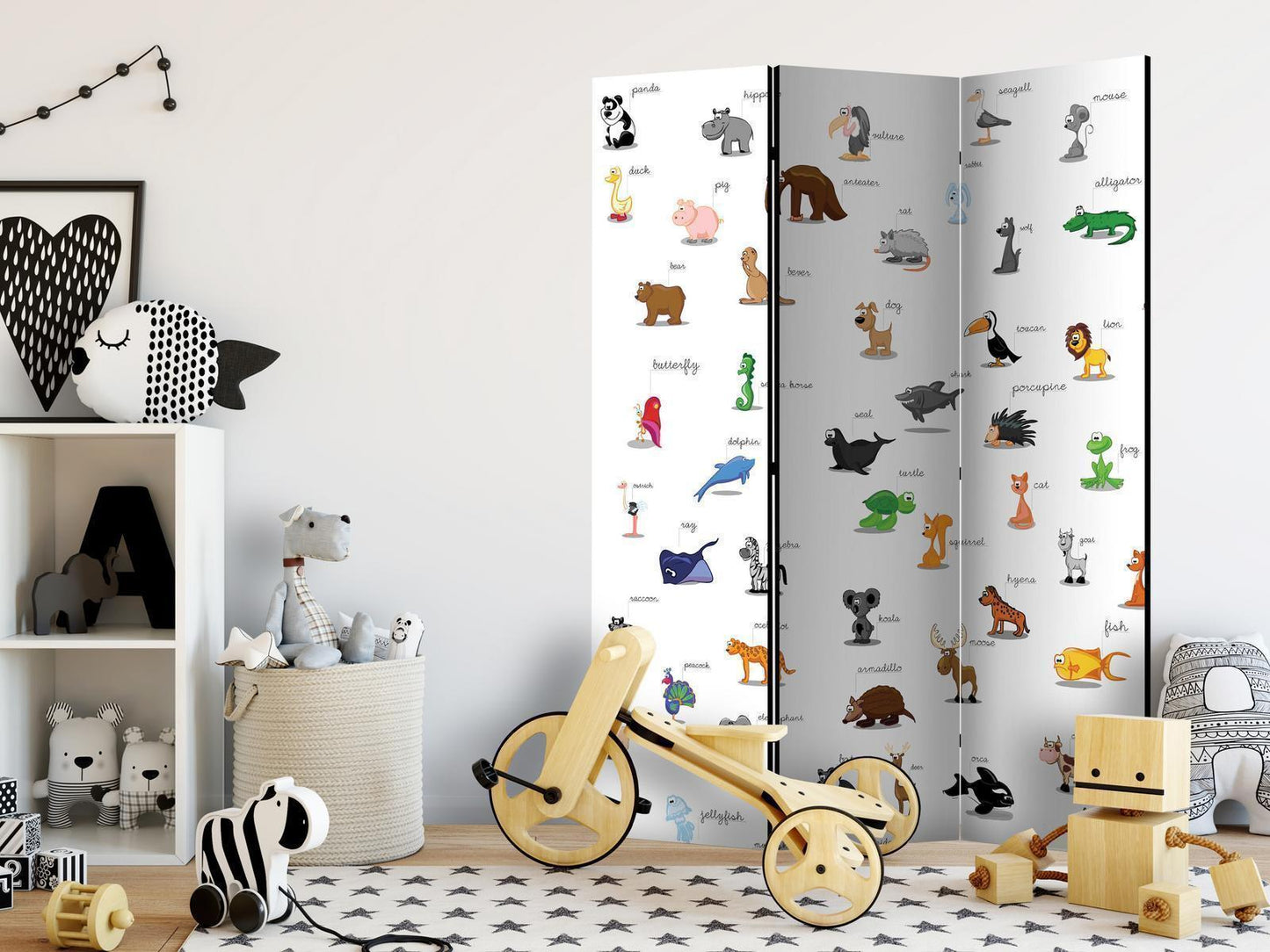 Die spanische Wand kann sowohl im Wohnzimmer, Schlafzimmer, Kinderzimmer, Badezimmer als auch in der Küche aufgestellt werden. Viele Büro-, Restaurant- und Clubbesitzer entscheiden sich häufig für diese dekorative Lösung in ihren Räumlichkeiten. Die spanische Wand "Paravent - animals (for children)" ist aus geruchsneutralen Materialien hergestellt, die sicher sind und daher keine Allergien auslösen. Es ist eine vielseitige Dekorationsmöglichkeit, die viele Vorteile hat. Der Hauptvorteil ist, dass diese Dekoration leicht zu bewegen ist, so dass sie schnell und einfach neu positioniert werden kann. Wichtig ist, dass die inneren Trennwände einen UV-Schutz haben, so dass die Farben auch im Laufe der Jahre intensiv bleiben. Der Raumteiler hat Designs, die die Einrichtung jedes Raumes ergänzen können.Details zur Produktsicherheit