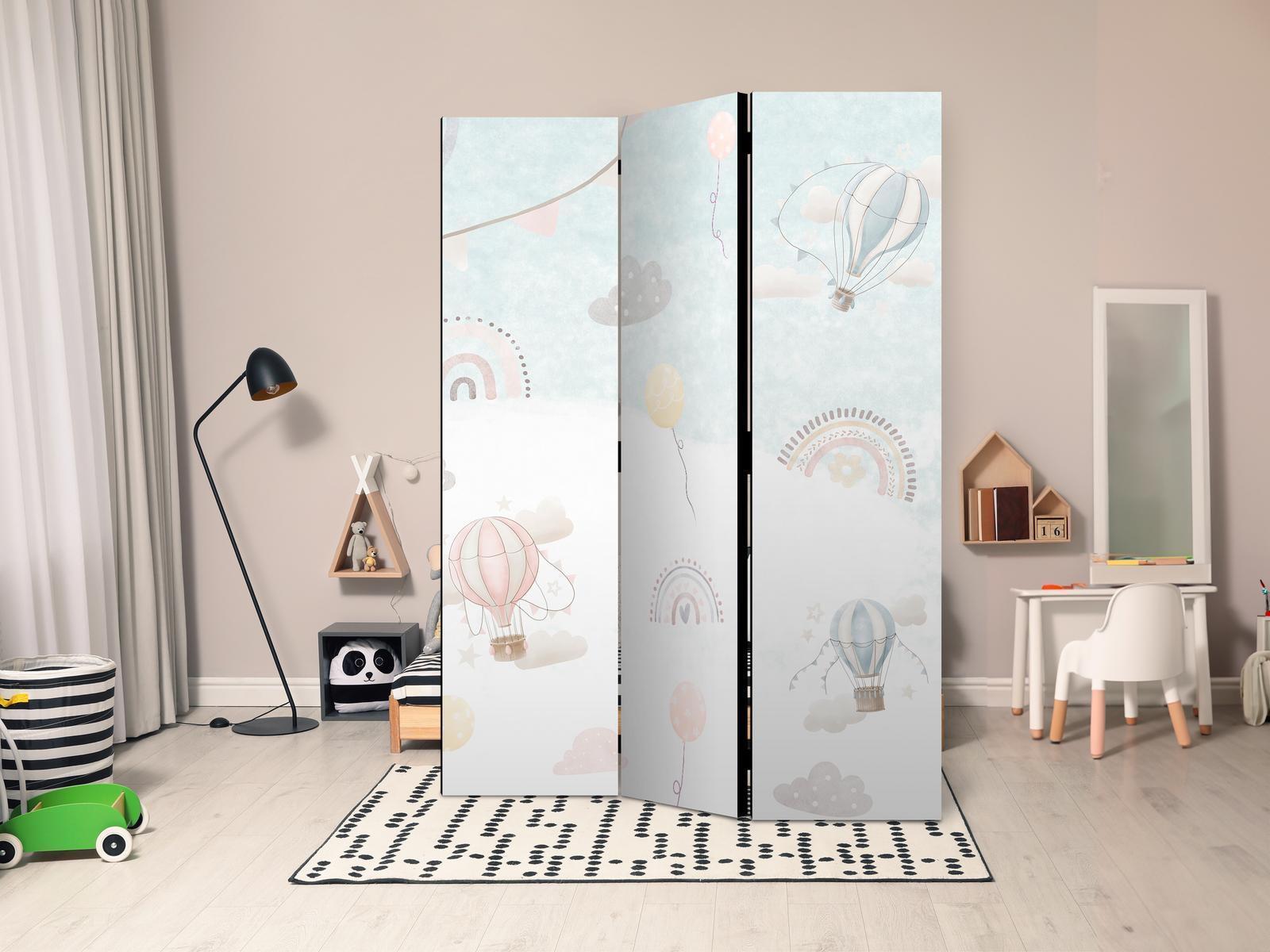Paravent "Paravent - Balloons in the Sky - Balloons in Pastel Colors Flying in a Cloudy Sky - Among Rainbows and Stars"