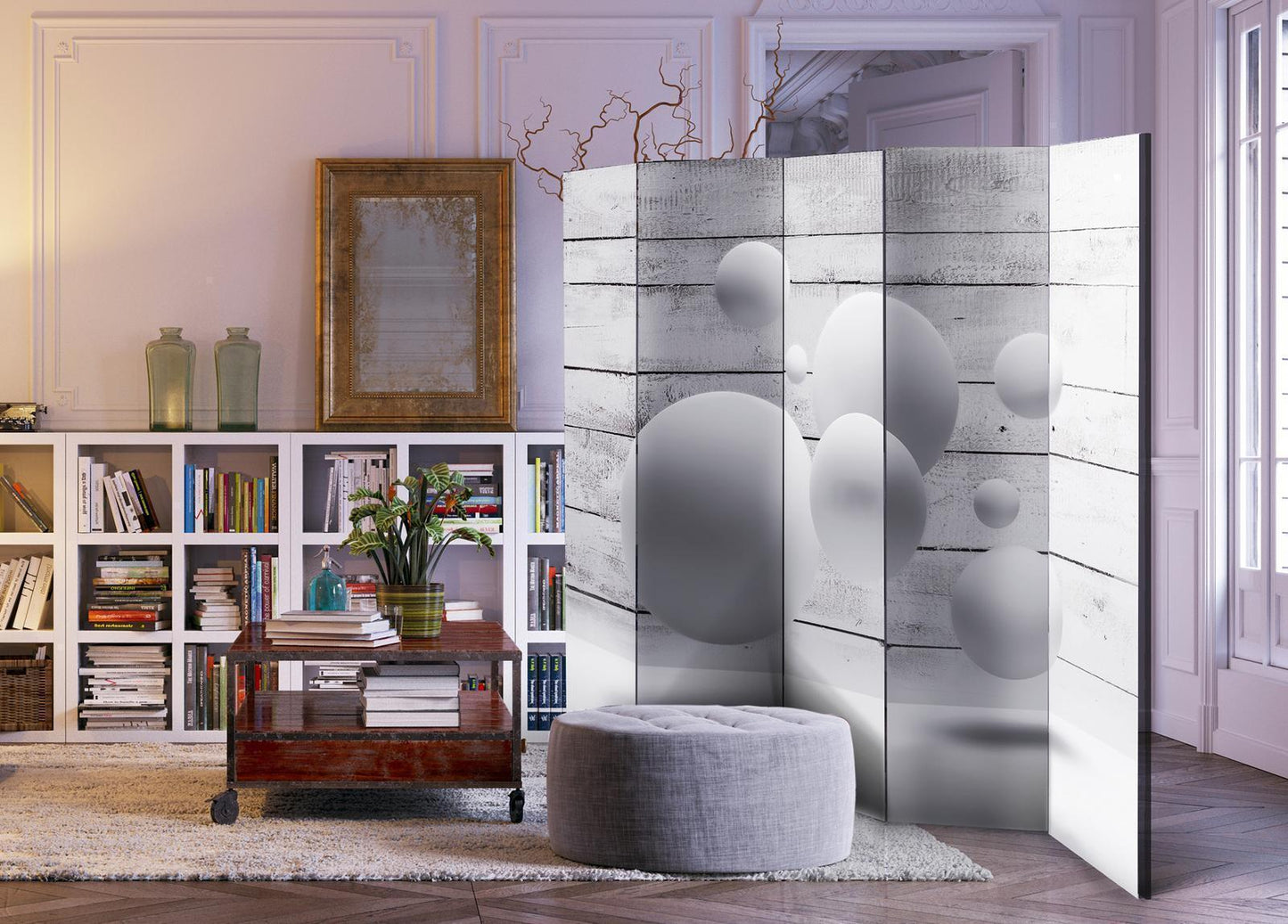 Paravents sind hervorragende Dekorationselemente, die auf vielfältige Weise eingesetzt werden können. Sie verbinden perfekt Funktionalität und originelle Ästhetik. Aus diesem Grund sind sie sehr beliebt. Der Hauptvorteil ist, dass diese Dekoration einen Raum unterteilen kann, ohne dass Renovierungsarbeiten erforderlich sind. Im Folgenden finden Sie die Vorteile dieses Gestaltungselements – lassen Sie sich davon für Ihre Einrichtung inspirieren. Sie können die Paravents aus unserem Sortiment in drei Varianten kaufen, und jede von ihnen erfüllt eine interessante Funktion: Paravent – einseitig bedruckt, Paravent – doppelseitig bedruckt, Akustischer Paravent. Dies ist ein klarer Beweis dafür, dass die Trennwände auch sehr nützlich sind. Viele Menschen verwenden sie zum Beispiel, um einen Raum optisch zu unterteilen oder einen Teil davon zu verbergen. Der Raumtrenner ist auch häufig in Wirtschaftsräumen zu finden, zum Beispiel in einem Friseursalon, einem Boutique oder einer Arztpraxis. Jeder schätzt die Ästhetik und den praktischen Nutzen dieser Dekoration. Mit Raumteiler Paravent "Paravent - Balls II" können Sie Räume in Zonen aufteilen – das Schlafzimmer in Schlaf- und Garderobenbereiche, das Wohnzimmer in Sitz- und Essbereiche. Gestalten Sie Ihre Home-Office-Ecke und grenzen Sie den Bürobereich im Wohnzimmer mit einem stilvollen Raumteiler ab. Wie Sie es verwenden, hängt von Ihrer Phantasie, Ihren Bedürfnissen und Vorlieben ab.