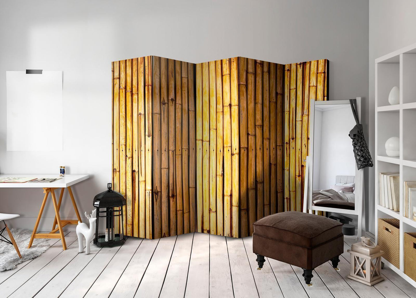 Die spanische Wand kann sowohl im Wohnzimmer, Schlafzimmer, Kinderzimmer, Badezimmer als auch in der Küche aufgestellt werden. Viele Büro-, Restaurant- und Clubbesitzer entscheiden sich häufig für diese dekorative Lösung in ihren Räumlichkeiten. Die spanische Wand "Paravent - Bamboo Garden II" ist aus geruchsneutralen Materialien hergestellt, die sicher sind und daher keine Allergien auslösen. Es ist eine vielseitige Dekorationsmöglichkeit, die viele Vorteile hat. Der Hauptvorteil ist, dass diese Dekoration leicht zu bewegen ist, so dass sie schnell und einfach neu positioniert werden kann. Wichtig ist, dass die inneren Trennwände einen UV-Schutz haben, so dass die Farben auch im Laufe der Jahre intensiv bleiben. Der Raumteiler hat Designs, die die Einrichtung jedes Raumes ergänzen können.Details zur Produktsicherheit