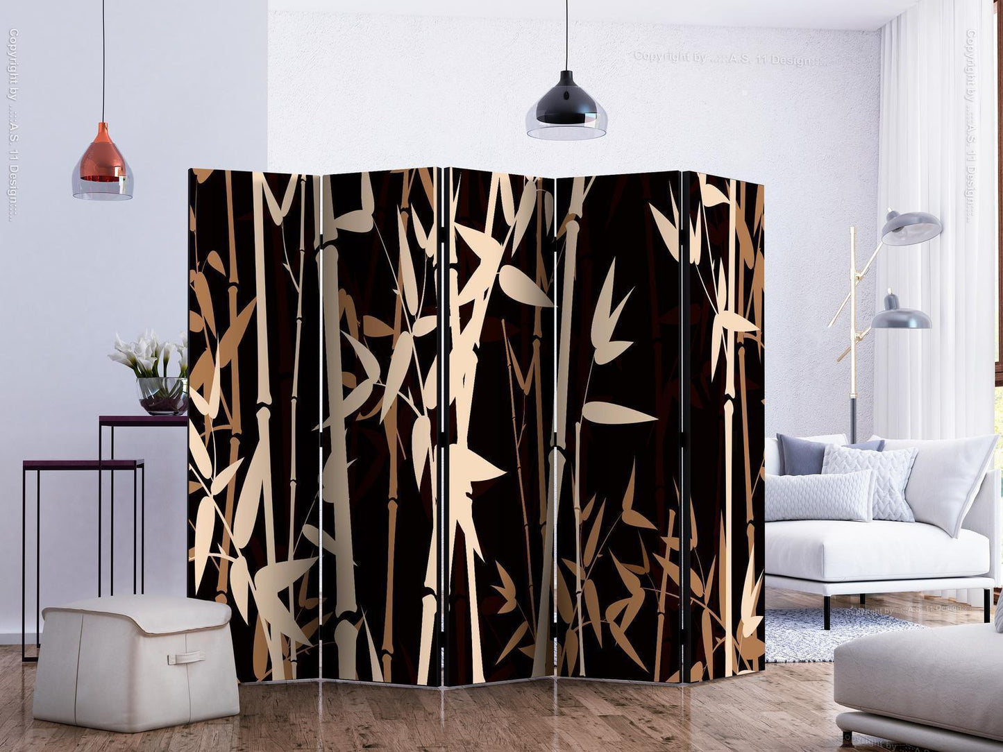Paravents sind hervorragende Dekorationselemente, die auf vielfältige Weise eingesetzt werden können. Sie verbinden perfekt Funktionalität und originelle Ästhetik. Aus diesem Grund sind sie sehr beliebt. Der Hauptvorteil ist, dass diese Dekoration einen Raum unterteilen kann, ohne dass Renovierungsarbeiten erforderlich sind. Im Folgenden finden Sie die Vorteile dieses Gestaltungselements – lassen Sie sich davon für Ihre Einrichtung inspirieren. Sie können die Paravents aus unserem Sortiment in drei Varianten kaufen, und jede von ihnen erfüllt eine interessante Funktion: Paravent – einseitig bedruckt, Paravent – doppelseitig bedruckt, Akustischer Paravent. Dies ist ein klarer Beweis dafür, dass die Trennwände auch sehr nützlich sind. Viele Menschen verwenden sie zum Beispiel, um einen Raum optisch zu unterteilen oder einen Teil davon zu verbergen. Der Raumtrenner ist auch häufig in Wirtschaftsräumen zu finden, zum Beispiel in einem Friseursalon, einem Boutique oder einer Arztpraxis. Jeder schätzt die Ästhetik und den praktischen Nutzen dieser Dekoration. Mit Raumteiler Paravent "Paravent - Bamboos II" können Sie Räume in Zonen aufteilen – das Schlafzimmer in Schlaf- und Garderobenbereiche, das Wohnzimmer in Sitz- und Essbereiche. Gestalten Sie Ihre Home-Office-Ecke und grenzen Sie den Bürobereich im Wohnzimmer mit einem stilvollen Raumteiler ab. Wie Sie es verwenden, hängt von Ihrer Phantasie, Ihren Bedürfnissen und Vorlieben ab.