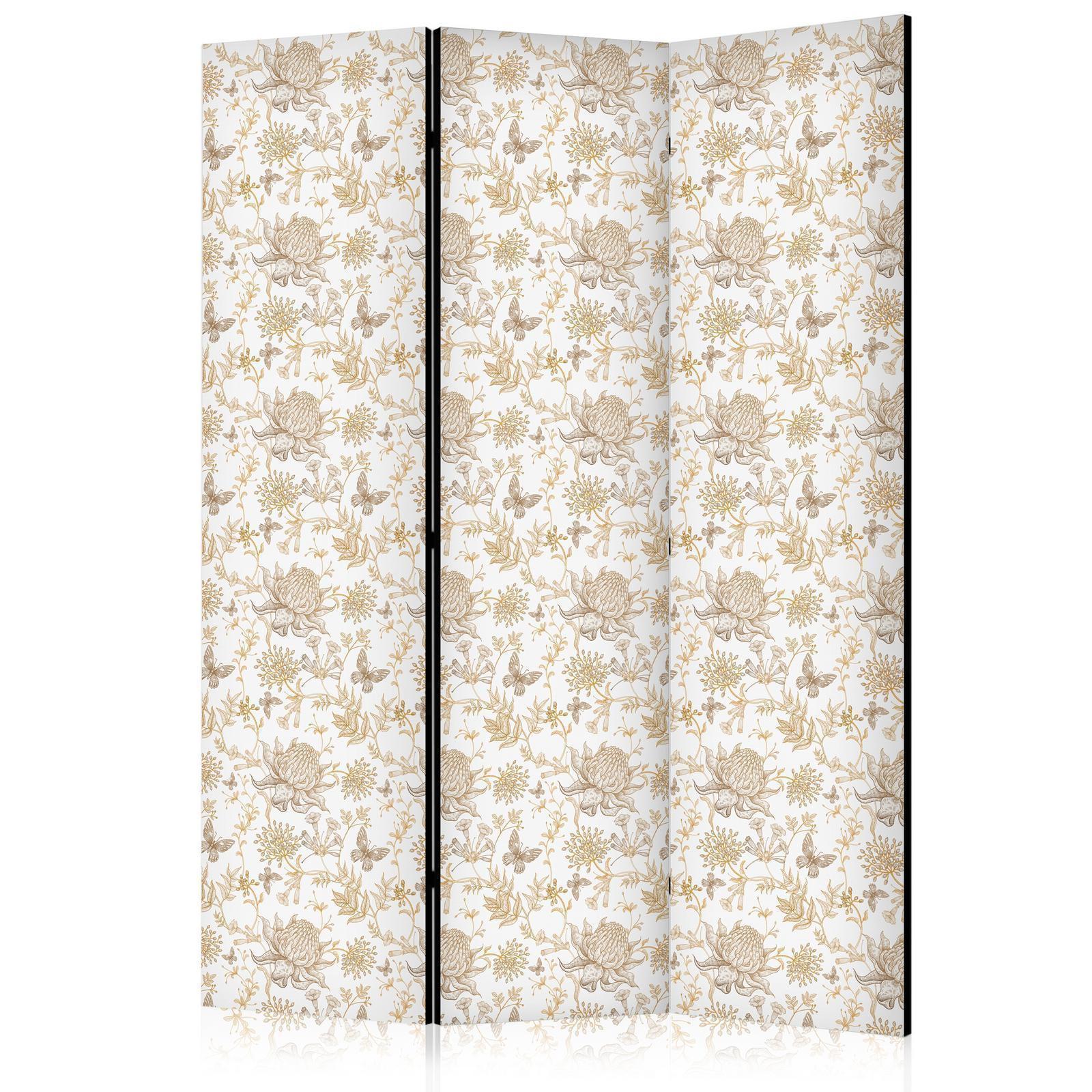 Paravent "Paravent - Beige Shades of Nature - Flowers and Butterflies on a White Background - Illustration"