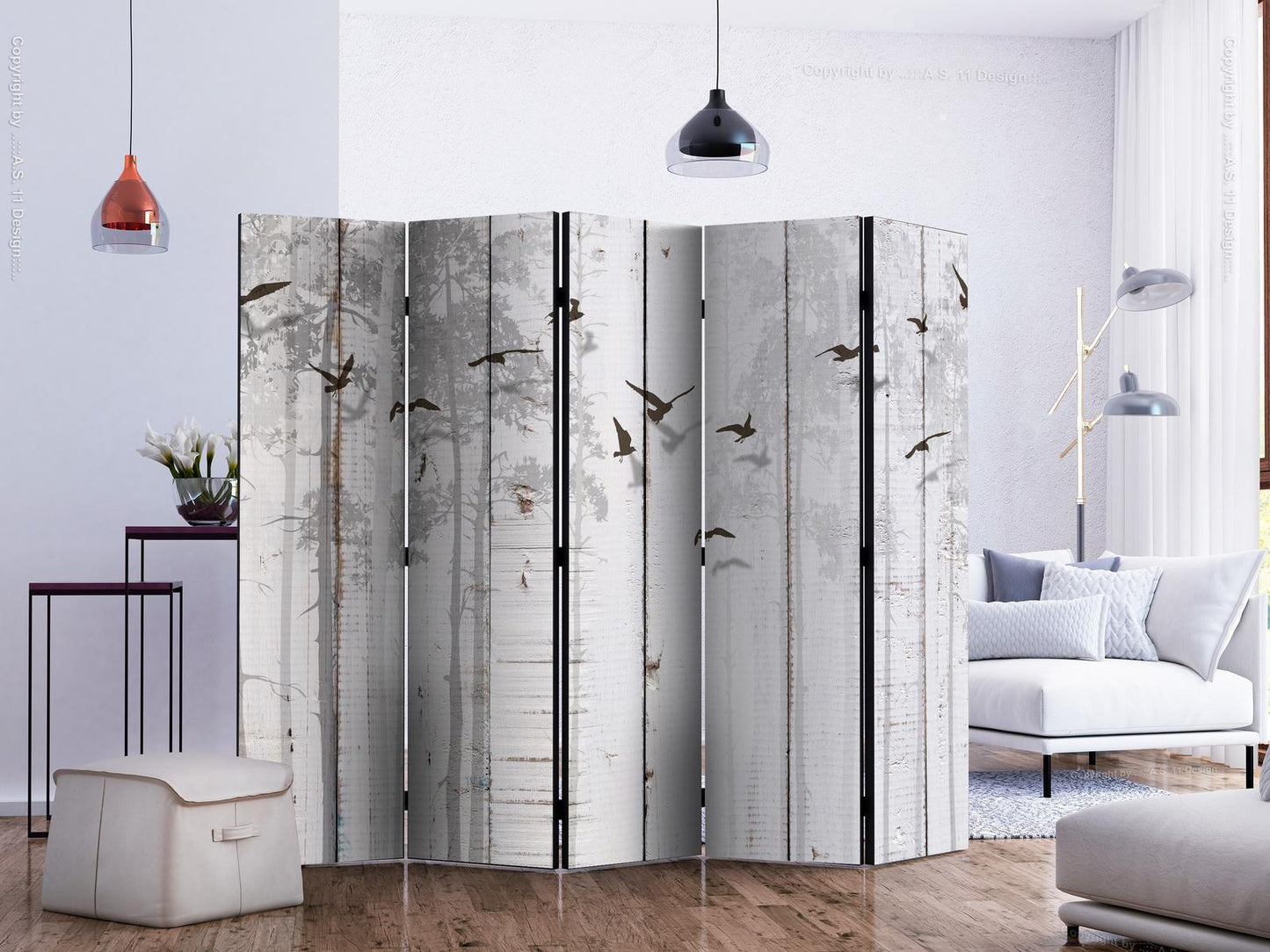 Paravents sind hervorragende Dekorationselemente, die auf vielfältige Weise eingesetzt werden können. Sie verbinden perfekt Funktionalität und originelle Ästhetik. Aus diesem Grund sind sie sehr beliebt. Der Hauptvorteil ist, dass diese Dekoration einen Raum unterteilen kann, ohne dass Renovierungsarbeiten erforderlich sind. Im Folgenden finden Sie die Vorteile dieses Gestaltungselements – lassen Sie sich davon für Ihre Einrichtung inspirieren. Sie können die Paravents aus unserem Sortiment in drei Varianten kaufen, und jede von ihnen erfüllt eine interessante Funktion: Paravent – einseitig bedruckt, Paravent – doppelseitig bedruckt, Akustischer Paravent. Dies ist ein klarer Beweis dafür, dass die Trennwände auch sehr nützlich sind. Viele Menschen verwenden sie zum Beispiel, um einen Raum optisch zu unterteilen oder einen Teil davon zu verbergen. Der Raumtrenner ist auch häufig in Wirtschaftsräumen zu finden, zum Beispiel in einem Friseursalon, einem Boutique oder einer Arztpraxis. Jeder schätzt die Ästhetik und den praktischen Nutzen dieser Dekoration. Mit Raumteiler Paravent "Paravent - Birds on Boards II" können Sie Räume in Zonen aufteilen – das Schlafzimmer in Schlaf- und Garderobenbereiche, das Wohnzimmer in Sitz- und Essbereiche. Gestalten Sie Ihre Home-Office-Ecke und grenzen Sie den Bürobereich im Wohnzimmer mit einem stilvollen Raumteiler ab. Wie Sie es verwenden, hängt von Ihrer Phantasie, Ihren Bedürfnissen und Vorlieben ab.