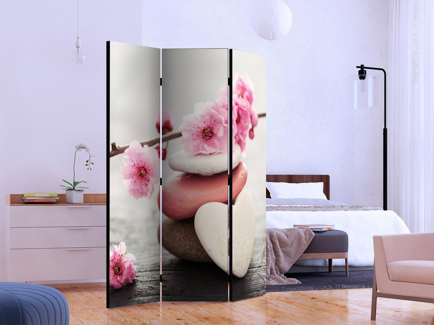 Paravents sind hervorragende Dekorationselemente, die auf vielfältige Weise eingesetzt werden können. Sie verbinden perfekt Funktionalität und originelle Ästhetik. Aus diesem Grund sind sie sehr beliebt. Der Hauptvorteil ist, dass diese Dekoration einen Raum unterteilen kann, ohne dass Renovierungsarbeiten erforderlich sind. Im Folgenden finden Sie die Vorteile dieses Gestaltungselements – lassen Sie sich davon für Ihre Einrichtung inspirieren. Sie können die Paravents aus unserem Sortiment in drei Varianten kaufen, und jede von ihnen erfüllt eine interessante Funktion: Paravent – einseitig bedruckt, Paravent – doppelseitig bedruckt, Akustischer Paravent. Dies ist ein klarer Beweis dafür, dass die Trennwände auch sehr nützlich sind. Viele Menschen verwenden sie zum Beispiel, um einen Raum optisch zu unterteilen oder einen Teil davon zu verbergen. Der Raumtrenner ist auch häufig in Wirtschaftsräumen zu finden, zum Beispiel in einem Friseursalon, einem Boutique oder einer Arztpraxis. Jeder schätzt die Ästhetik und den praktischen Nutzen dieser Dekoration. Mit Raumteiler Paravent "Paravent - Blooming Little Thing" können Sie Räume in Zonen aufteilen – das Schlafzimmer in Schlaf- und Garderobenbereiche, das Wohnzimmer in Sitz- und Essbereiche. Gestalten Sie Ihre Home-Office-Ecke und grenzen Sie den Bürobereich im Wohnzimmer mit einem stilvollen Raumteiler ab. Wie Sie es verwenden, hängt von Ihrer Phantasie, Ihren Bedürfnissen und Vorlieben ab.