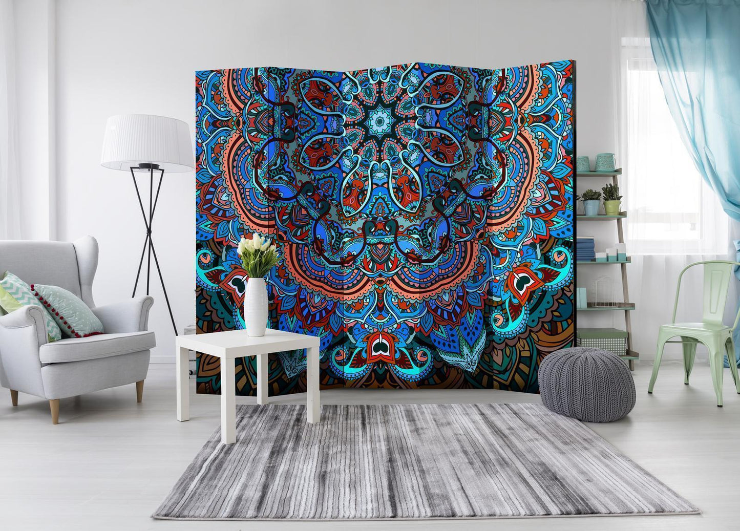 Die spanische Wand kann sowohl im Wohnzimmer, Schlafzimmer, Kinderzimmer, Badezimmer als auch in der Küche aufgestellt werden. Viele Büro-, Restaurant- und Clubbesitzer entscheiden sich häufig für diese dekorative Lösung in ihren Räumlichkeiten. Die spanische Wand "Paravent - Blue Fantasy II" ist aus geruchsneutralen Materialien hergestellt, die sicher sind und daher keine Allergien auslösen. Es ist eine vielseitige Dekorationsmöglichkeit, die viele Vorteile hat. Der Hauptvorteil ist, dass diese Dekoration leicht zu bewegen ist, so dass sie schnell und einfach neu positioniert werden kann. Wichtig ist, dass die inneren Trennwände einen UV-Schutz haben, so dass die Farben auch im Laufe der Jahre intensiv bleiben. Der Raumteiler hat Designs, die die Einrichtung jedes Raumes ergänzen können.Details zur Produktsicherheit
