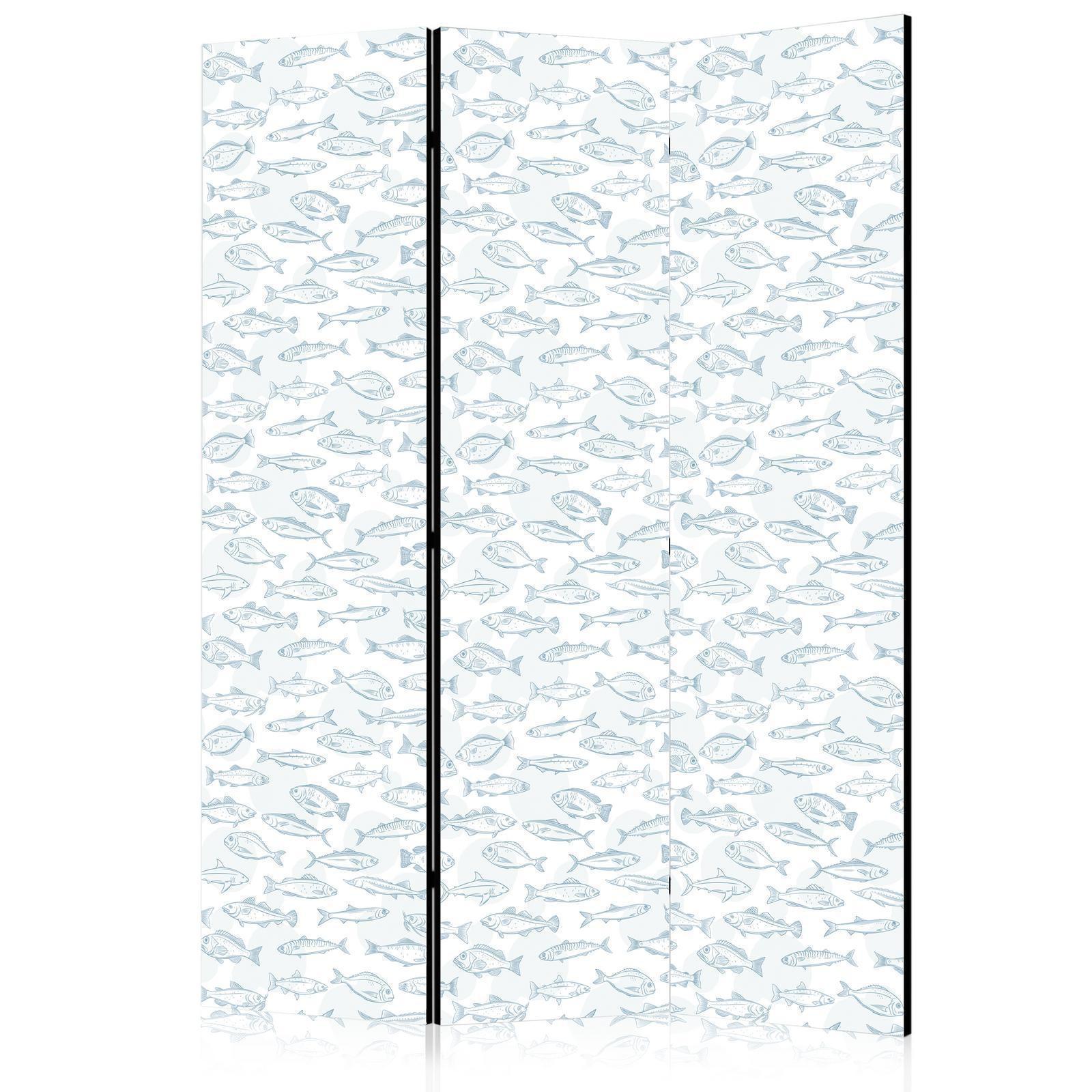 Paravent - Blue Fish - Blue Outlines of Various Species of Fish on a White-Blue Background