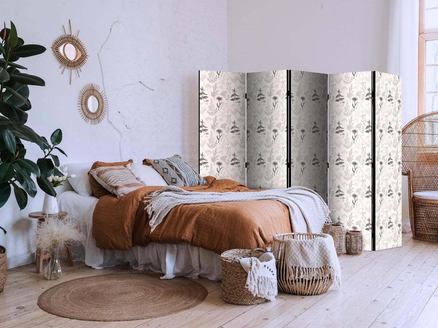 Paravent "Paravent - Botanical Illustration - Drawing of Flowers and Herbs - Beige Grays"