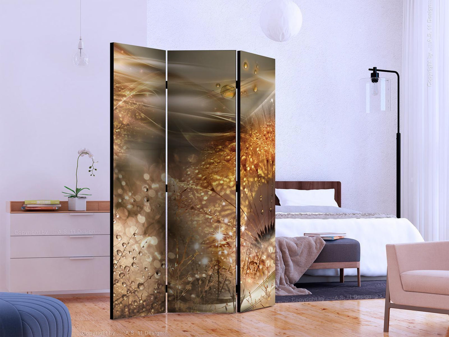 Die spanische Wand kann sowohl im Wohnzimmer, Schlafzimmer, Kinderzimmer, Badezimmer als auch in der Küche aufgestellt werden. Viele Büro-, Restaurant- und Clubbesitzer entscheiden sich häufig für diese dekorative Lösung in ihren Räumlichkeiten. Die spanische Wand "Paravent - Dandelions World" ist aus geruchsneutralen Materialien hergestellt, die sicher sind und daher keine Allergien auslösen. Es ist eine vielseitige Dekorationsmöglichkeit, die viele Vorteile hat. Der Hauptvorteil ist, dass diese Dekoration leicht zu bewegen ist, so dass sie schnell und einfach neu positioniert werden kann. Wichtig ist, dass die inneren Trennwände einen UV-Schutz haben, so dass die Farben auch im Laufe der Jahre intensiv bleiben. Der Raumteiler hat Designs, die die Einrichtung jedes Raumes ergänzen können.Details zur Produktsicherheit