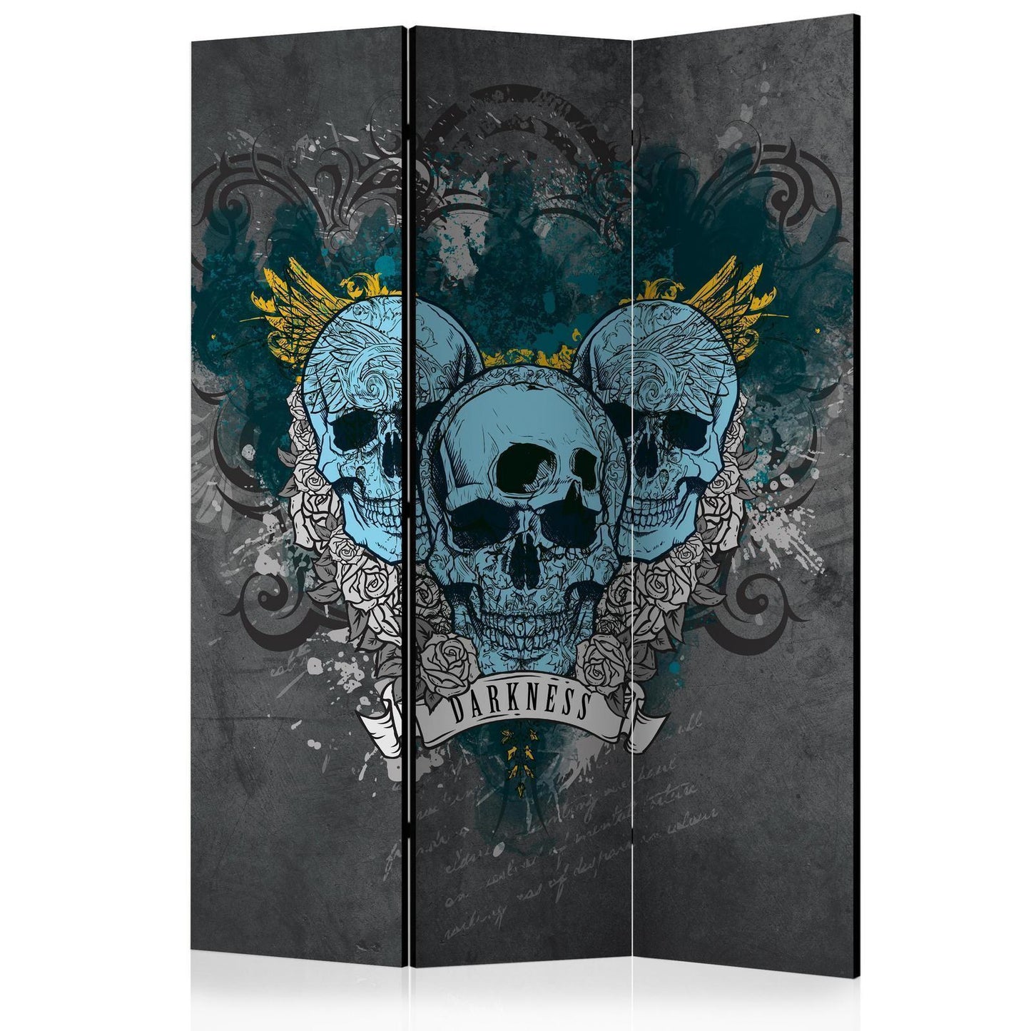 Die spanische Wand kann sowohl im Wohnzimmer, Schlafzimmer, Kinderzimmer, Badezimmer als auch in der Küche aufgestellt werden. Viele Büro-, Restaurant- und Clubbesitzer entscheiden sich häufig für diese dekorative Lösung in ihren Räumlichkeiten. Die spanische Wand "Paravent - Darkness III" ist aus geruchsneutralen Materialien hergestellt, die sicher sind und daher keine Allergien auslösen. Es ist eine vielseitige Dekorationsmöglichkeit, die viele Vorteile hat. Der Hauptvorteil ist, dass diese Dekoration leicht zu bewegen ist, so dass sie schnell und einfach neu positioniert werden kann. Wichtig ist, dass die inneren Trennwände einen UV-Schutz haben, so dass die Farben auch im Laufe der Jahre intensiv bleiben. Der Raumteiler hat Designs, die die Einrichtung jedes Raumes ergänzen können.Details zur Produktsicherheit