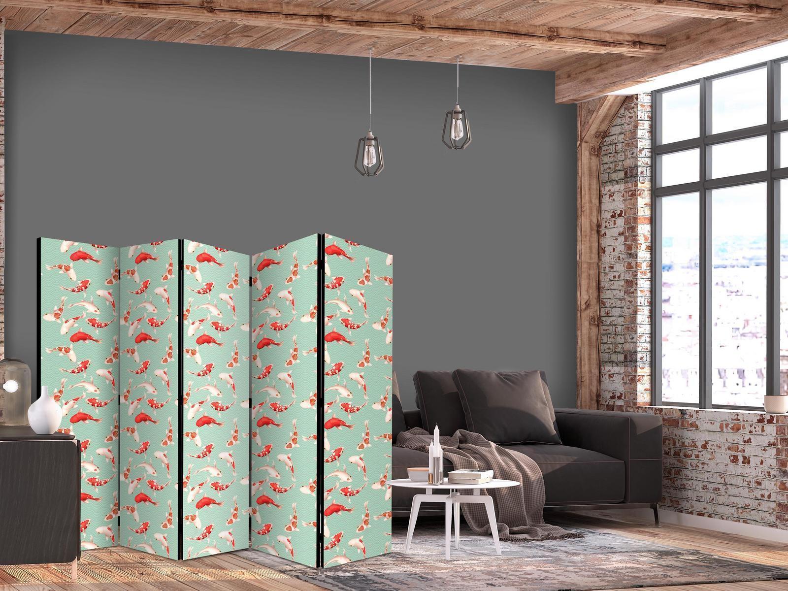 Paravent - Fish And Japanese Pattern - Koi Fish in Orange-Cream Colors on a Green-Mint Background With An Oriental Pattern