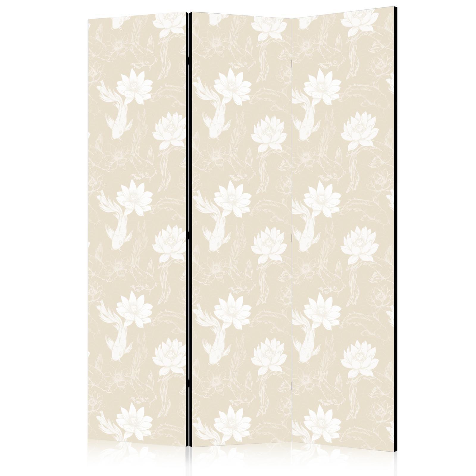 Paravent - Fish and Water Lilies - Bright Oriental Fish Swimming Among Water Flowers on a Delicate Sand-Beige Background