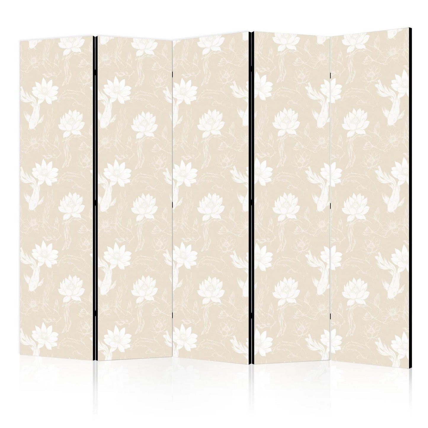 Paravent - Fish and Water Lilies - Bright Oriental Fish Swimming Among Water Flowers on a Delicate Sand-Beige Background