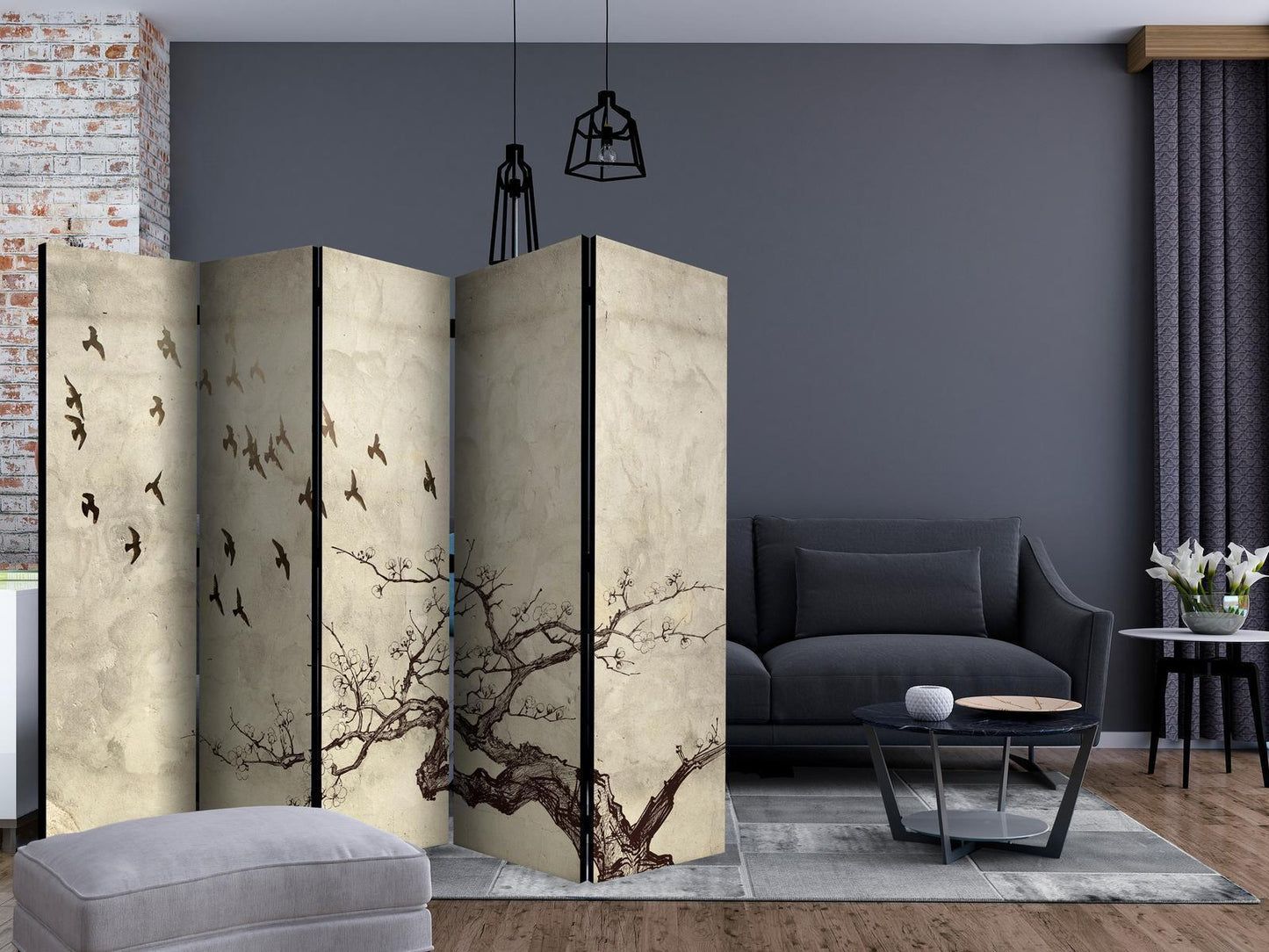 Die spanische Wand kann sowohl im Wohnzimmer, Schlafzimmer, Kinderzimmer, Badezimmer als auch in der Küche aufgestellt werden. Viele Büro-, Restaurant- und Clubbesitzer entscheiden sich häufig für diese dekorative Lösung in ihren Räumlichkeiten. Die spanische Wand "Paravent - Flock of birds II" ist aus geruchsneutralen Materialien hergestellt, die sicher sind und daher keine Allergien auslösen. Es ist eine vielseitige Dekorationsmöglichkeit, die viele Vorteile hat. Der Hauptvorteil ist, dass diese Dekoration leicht zu bewegen ist, so dass sie schnell und einfach neu positioniert werden kann. Wichtig ist, dass die inneren Trennwände einen UV-Schutz haben, so dass die Farben auch im Laufe der Jahre intensiv bleiben. Der Raumteiler hat Designs, die die Einrichtung jedes Raumes ergänzen können.Details zur Produktsicherheit