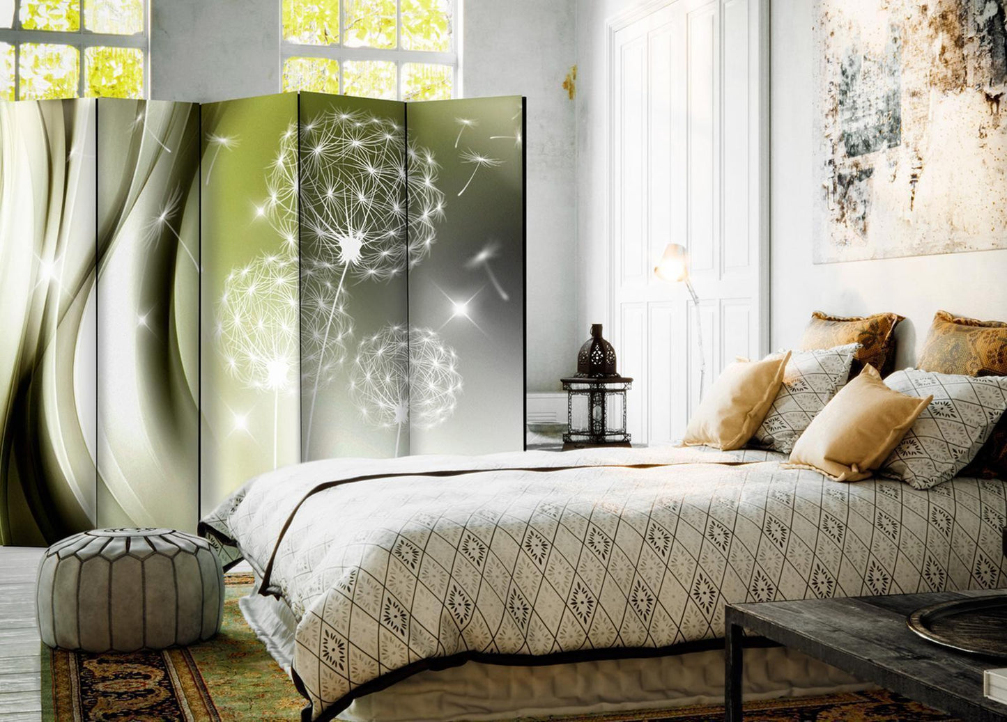 Paravents sind hervorragende Dekorationselemente, die auf vielfältige Weise eingesetzt werden können. Sie verbinden perfekt Funktionalität und originelle Ästhetik. Aus diesem Grund sind sie sehr beliebt. Der Hauptvorteil ist, dass diese Dekoration einen Raum unterteilen kann, ohne dass Renovierungsarbeiten erforderlich sind. Im Folgenden finden Sie die Vorteile dieses Gestaltungselements – lassen Sie sich davon für Ihre Einrichtung inspirieren. Sie können die Paravents aus unserem Sortiment in drei Varianten kaufen, und jede von ihnen erfüllt eine interessante Funktion: Paravent – einseitig bedruckt, Paravent – doppelseitig bedruckt, Akustischer Paravent. Dies ist ein klarer Beweis dafür, dass die Trennwände auch sehr nützlich sind. Viele Menschen verwenden sie zum Beispiel, um einen Raum optisch zu unterteilen oder einen Teil davon zu verbergen. Der Raumtrenner ist auch häufig in Wirtschaftsräumen zu finden, zum Beispiel in einem Friseursalon, einem Boutique oder einer Arztpraxis. Jeder schätzt die Ästhetik und den praktischen Nutzen dieser Dekoration. Mit Raumteiler Paravent "Paravent - Green Gentleness II" können Sie Räume in Zonen aufteilen – das Schlafzimmer in Schlaf- und Garderobenbereiche, das Wohnzimmer in Sitz- und Essbereiche. Gestalten Sie Ihre Home-Office-Ecke und grenzen Sie den Bürobereich im Wohnzimmer mit einem stilvollen Raumteiler ab. Wie Sie es verwenden, hängt von Ihrer Phantasie, Ihren Bedürfnissen und Vorlieben ab.