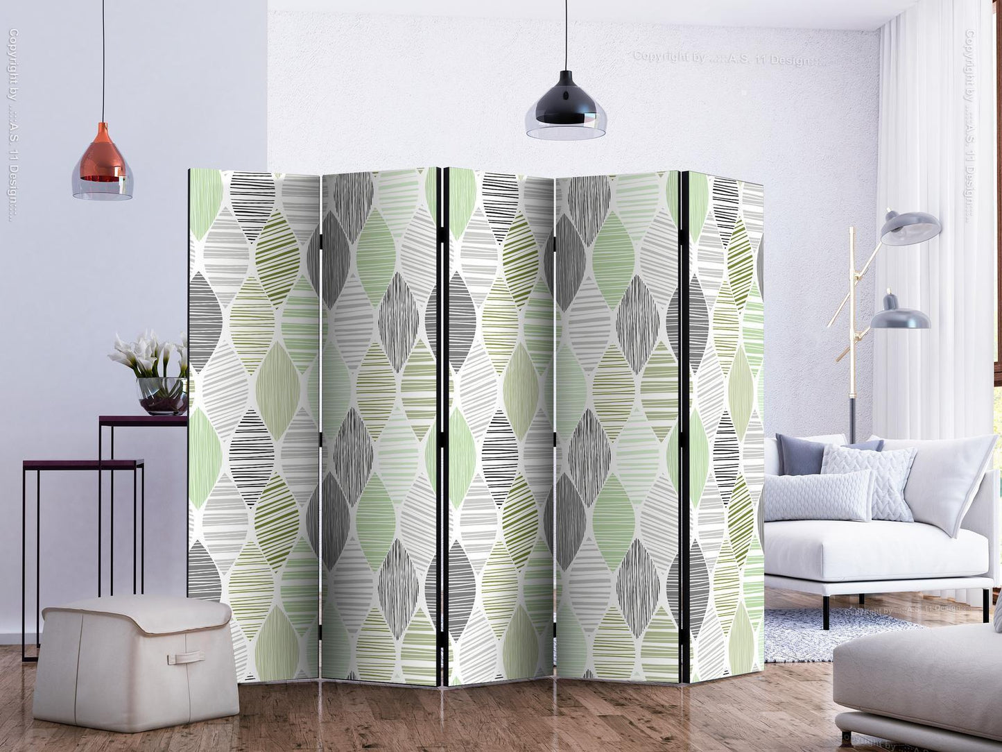 Paravents sind hervorragende Dekorationselemente, die auf vielfältige Weise eingesetzt werden können. Sie verbinden perfekt Funktionalität und originelle Ästhetik. Aus diesem Grund sind sie sehr beliebt. Der Hauptvorteil ist, dass diese Dekoration einen Raum unterteilen kann, ohne dass Renovierungsarbeiten erforderlich sind. Im Folgenden finden Sie die Vorteile dieses Gestaltungselements – lassen Sie sich davon für Ihre Einrichtung inspirieren. Sie können die Paravents aus unserem Sortiment in drei Varianten kaufen, und jede von ihnen erfüllt eine interessante Funktion: Paravent – einseitig bedruckt, Paravent – doppelseitig bedruckt, Akustischer Paravent. Dies ist ein klarer Beweis dafür, dass die Trennwände auch sehr nützlich sind. Viele Menschen verwenden sie zum Beispiel, um einen Raum optisch zu unterteilen oder einen Teil davon zu verbergen. Der Raumtrenner ist auch häufig in Wirtschaftsräumen zu finden, zum Beispiel in einem Friseursalon, einem Boutique oder einer Arztpraxis. Jeder schätzt die Ästhetik und den praktischen Nutzen dieser Dekoration. Mit Raumteiler Paravent "Paravent - Green Tears II" können Sie Räume in Zonen aufteilen – das Schlafzimmer in Schlaf- und Garderobenbereiche, das Wohnzimmer in Sitz- und Essbereiche. Gestalten Sie Ihre Home-Office-Ecke und grenzen Sie den Bürobereich im Wohnzimmer mit einem stilvollen Raumteiler ab. Wie Sie es verwenden, hängt von Ihrer Phantasie, Ihren Bedürfnissen und Vorlieben ab.
