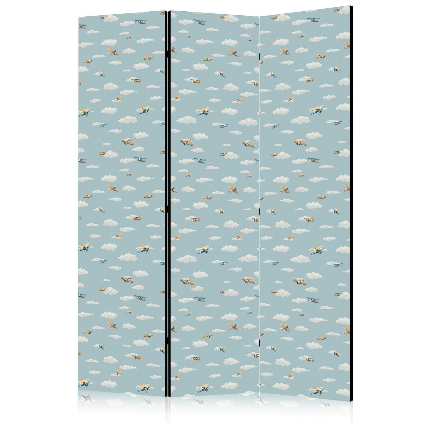 Paravent "Paravent - Illustration - Yellow-Blue Airplanes Against a Blue Sky"