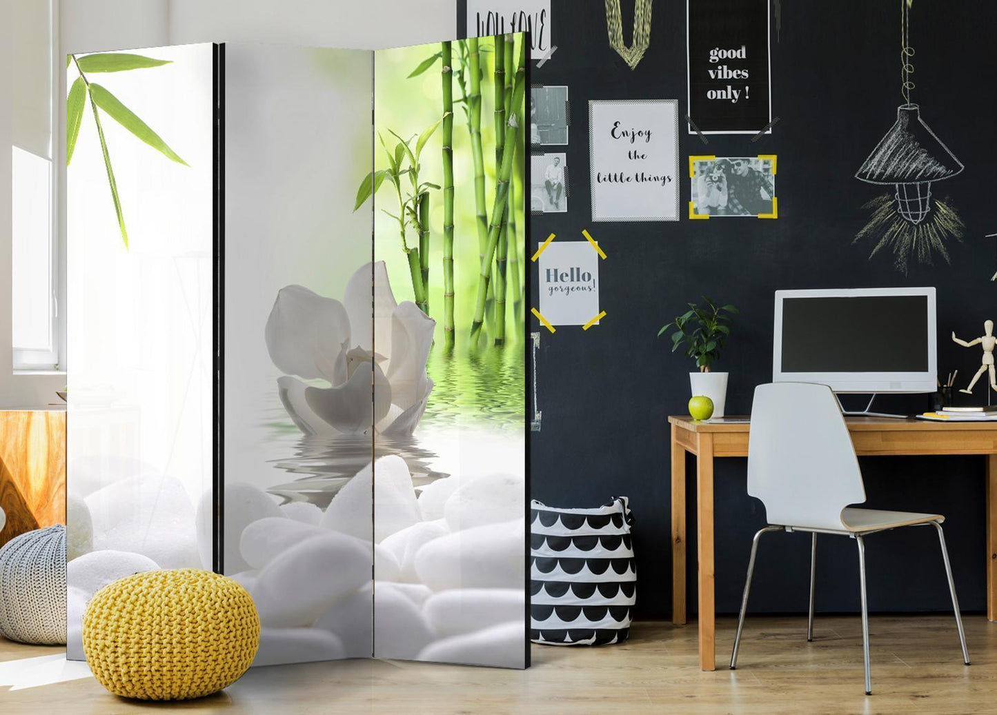 Paravents sind hervorragende Dekorationselemente, die auf vielfältige Weise eingesetzt werden können. Sie verbinden perfekt Funktionalität und originelle Ästhetik. Aus diesem Grund sind sie sehr beliebt. Der Hauptvorteil ist, dass diese Dekoration einen Raum unterteilen kann, ohne dass Renovierungsarbeiten erforderlich sind. Im Folgenden finden Sie die Vorteile dieses Gestaltungselements – lassen Sie sich davon für Ihre Einrichtung inspirieren. Sie können die Paravents aus unserem Sortiment in drei Varianten kaufen, und jede von ihnen erfüllt eine interessante Funktion: Paravent – einseitig bedruckt, Paravent – doppelseitig bedruckt, Akustischer Paravent. Dies ist ein klarer Beweis dafür, dass die Trennwände auch sehr nützlich sind. Viele Menschen verwenden sie zum Beispiel, um einen Raum optisch zu unterteilen oder einen Teil davon zu verbergen. Der Raumtrenner ist auch häufig in Wirtschaftsräumen zu finden, zum Beispiel in einem Friseursalon, einem Boutique oder einer Arztpraxis. Jeder schätzt die Ästhetik und den praktischen Nutzen dieser Dekoration. Mit Raumteiler Paravent "Paravent - Lake of Silence" können Sie Räume in Zonen aufteilen – das Schlafzimmer in Schlaf- und Garderobenbereiche, das Wohnzimmer in Sitz- und Essbereiche. Gestalten Sie Ihre Home-Office-Ecke und grenzen Sie den Bürobereich im Wohnzimmer mit einem stilvollen Raumteiler ab. Wie Sie es verwenden, hängt von Ihrer Phantasie, Ihren Bedürfnissen und Vorlieben ab.