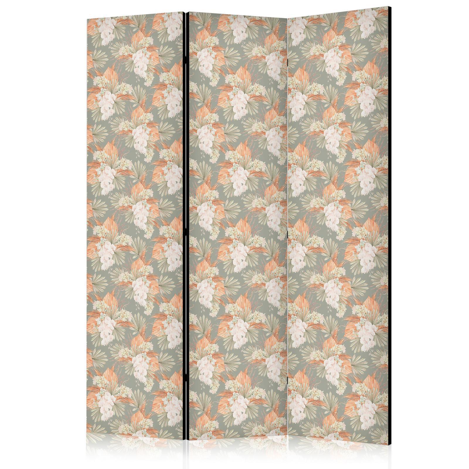 Paravent "Paravent - Little Bouquets - Exotic Flowers and Leaves on a Gray-Green Background"
