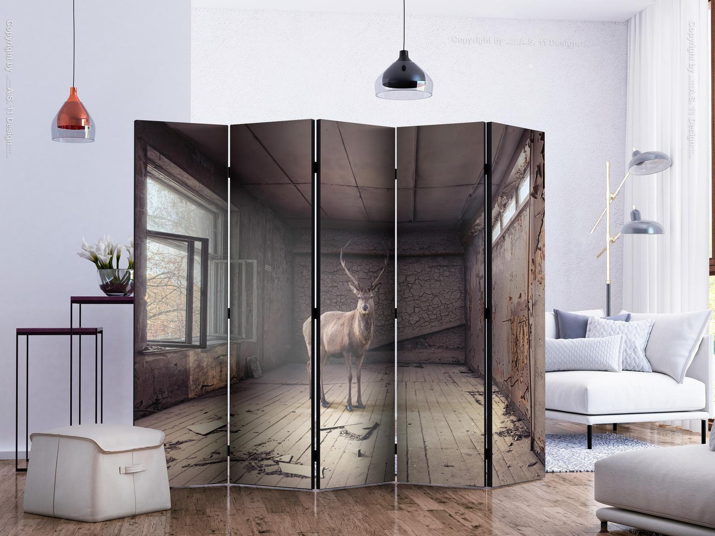 Die spanische Wand kann sowohl im Wohnzimmer, Schlafzimmer, Kinderzimmer, Badezimmer als auch in der Küche aufgestellt werden. Viele Büro-, Restaurant- und Clubbesitzer entscheiden sich häufig für diese dekorative Lösung in ihren Räumlichkeiten. Die spanische Wand "Paravent - Lost II" ist aus geruchsneutralen Materialien hergestellt, die sicher sind und daher keine Allergien auslösen. Es ist eine vielseitige Dekorationsmöglichkeit, die viele Vorteile hat. Der Hauptvorteil ist, dass diese Dekoration leicht zu bewegen ist, so dass sie schnell und einfach neu positioniert werden kann. Wichtig ist, dass die inneren Trennwände einen UV-Schutz haben, so dass die Farben auch im Laufe der Jahre intensiv bleiben. Der Raumteiler hat Designs, die die Einrichtung jedes Raumes ergänzen können.Details zur Produktsicherheit