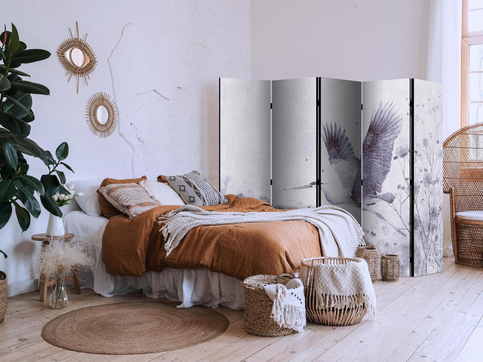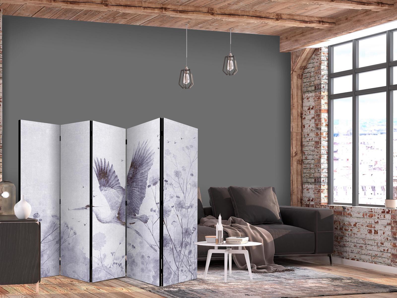 Paravent "Paravent - Majestic flight - a crane in flight in monochrome, cool colours"