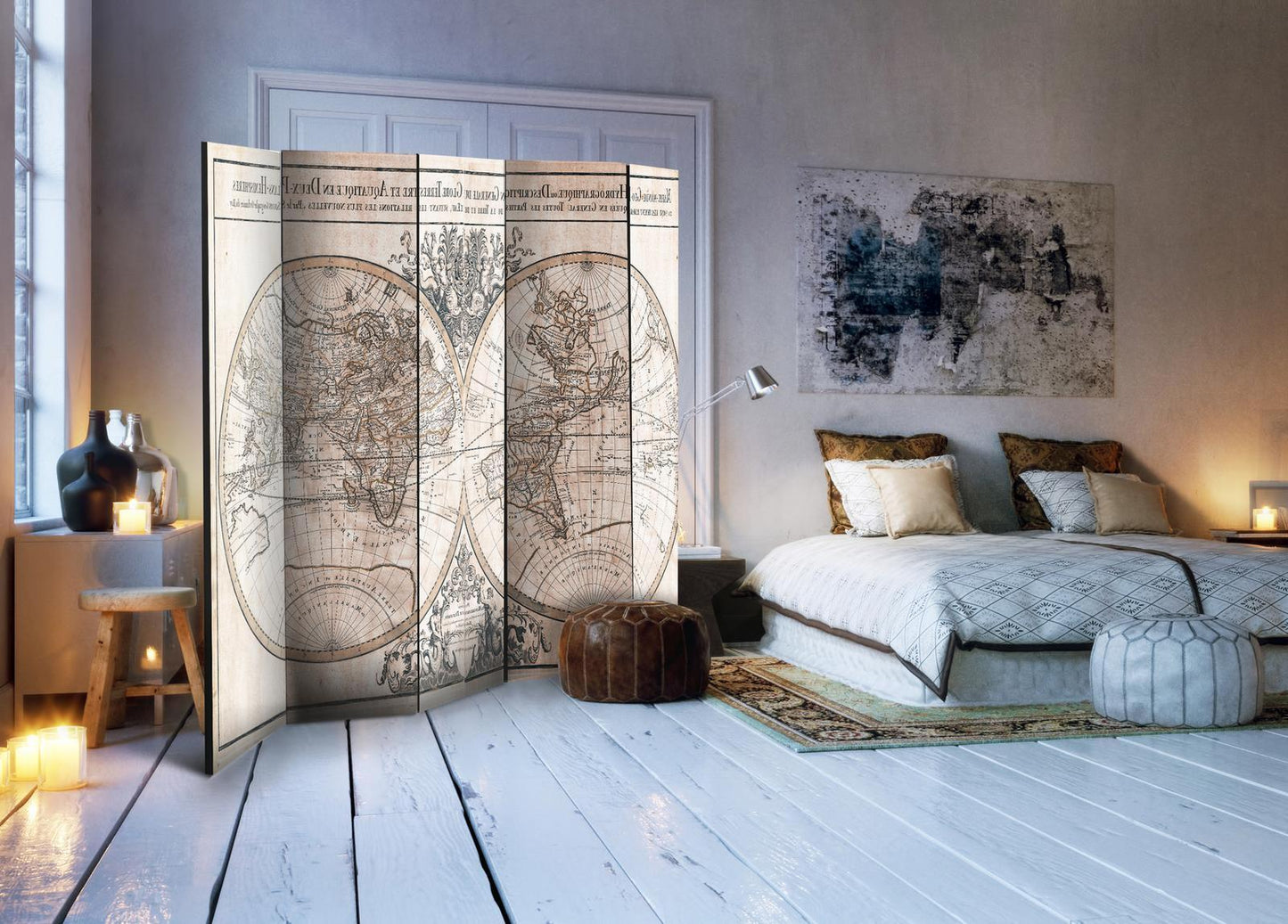 Die spanische Wand kann sowohl im Wohnzimmer, Schlafzimmer, Kinderzimmer, Badezimmer als auch in der Küche aufgestellt werden. Viele Büro-, Restaurant- und Clubbesitzer entscheiden sich häufig für diese dekorative Lösung in ihren Räumlichkeiten. Die spanische Wand "Paravent - Mappe-Monde Geo-Hydrographique" ist aus geruchsneutralen Materialien hergestellt, die sicher sind und daher keine Allergien auslösen. Es ist eine vielseitige Dekorationsmöglichkeit, die viele Vorteile hat. Der Hauptvorteil ist, dass diese Dekoration leicht zu bewegen ist, so dass sie schnell und einfach neu positioniert werden kann. Wichtig ist, dass die inneren Trennwände einen UV-Schutz haben, so dass die Farben auch im Laufe der Jahre intensiv bleiben. Der Raumteiler hat Designs, die die Einrichtung jedes Raumes ergänzen können.Details zur Produktsicherheit