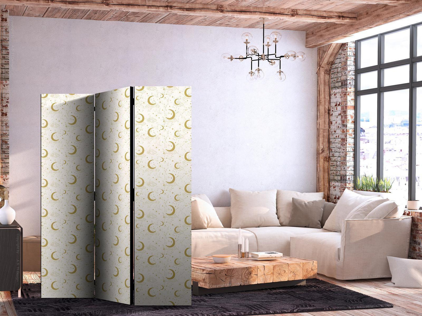 Paravent - Moonlit Nights - Delicate Moons and Clouds in Warm Tones