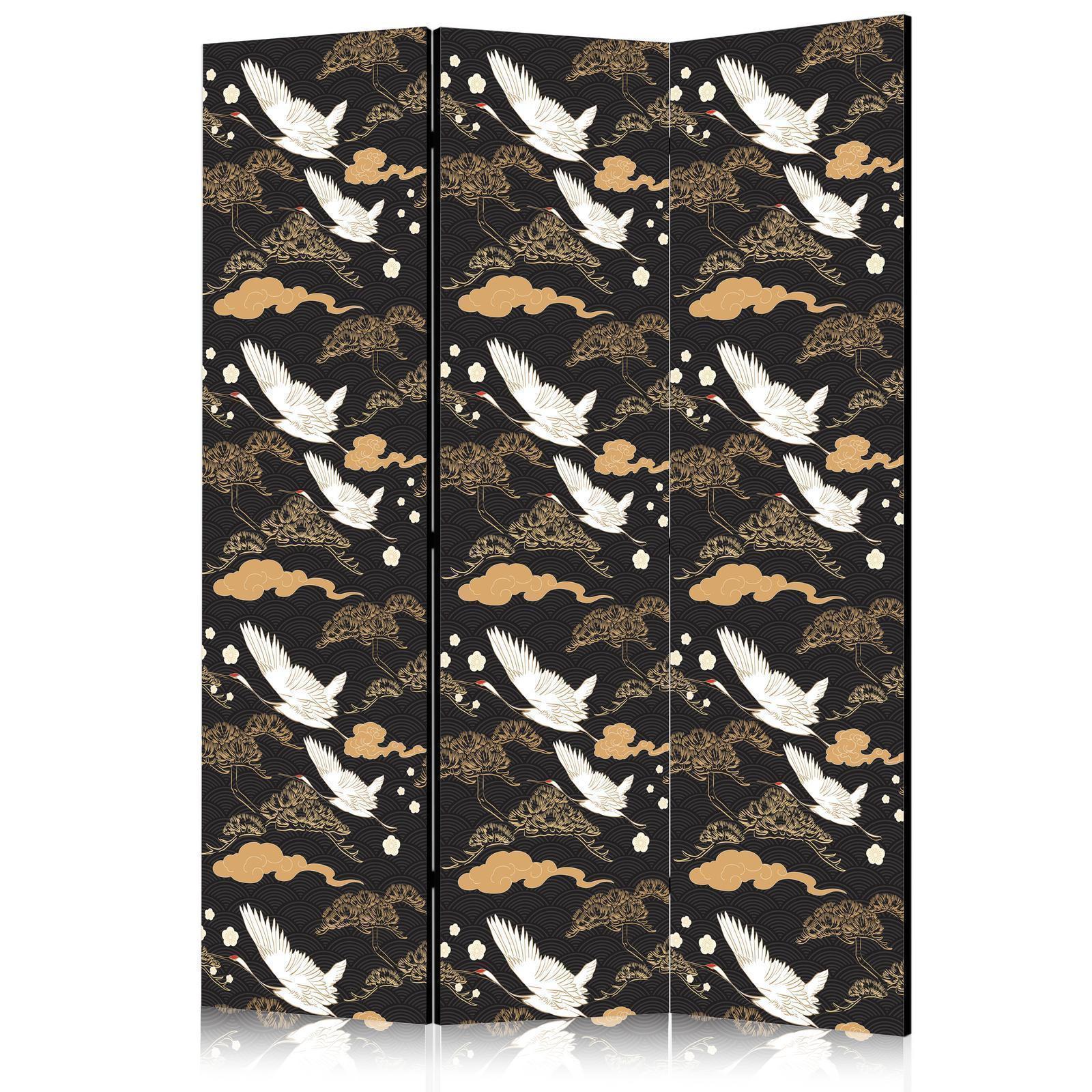 Paravent - Oriental impressions - decorative pattern with a motif of flying cranes on a dark background