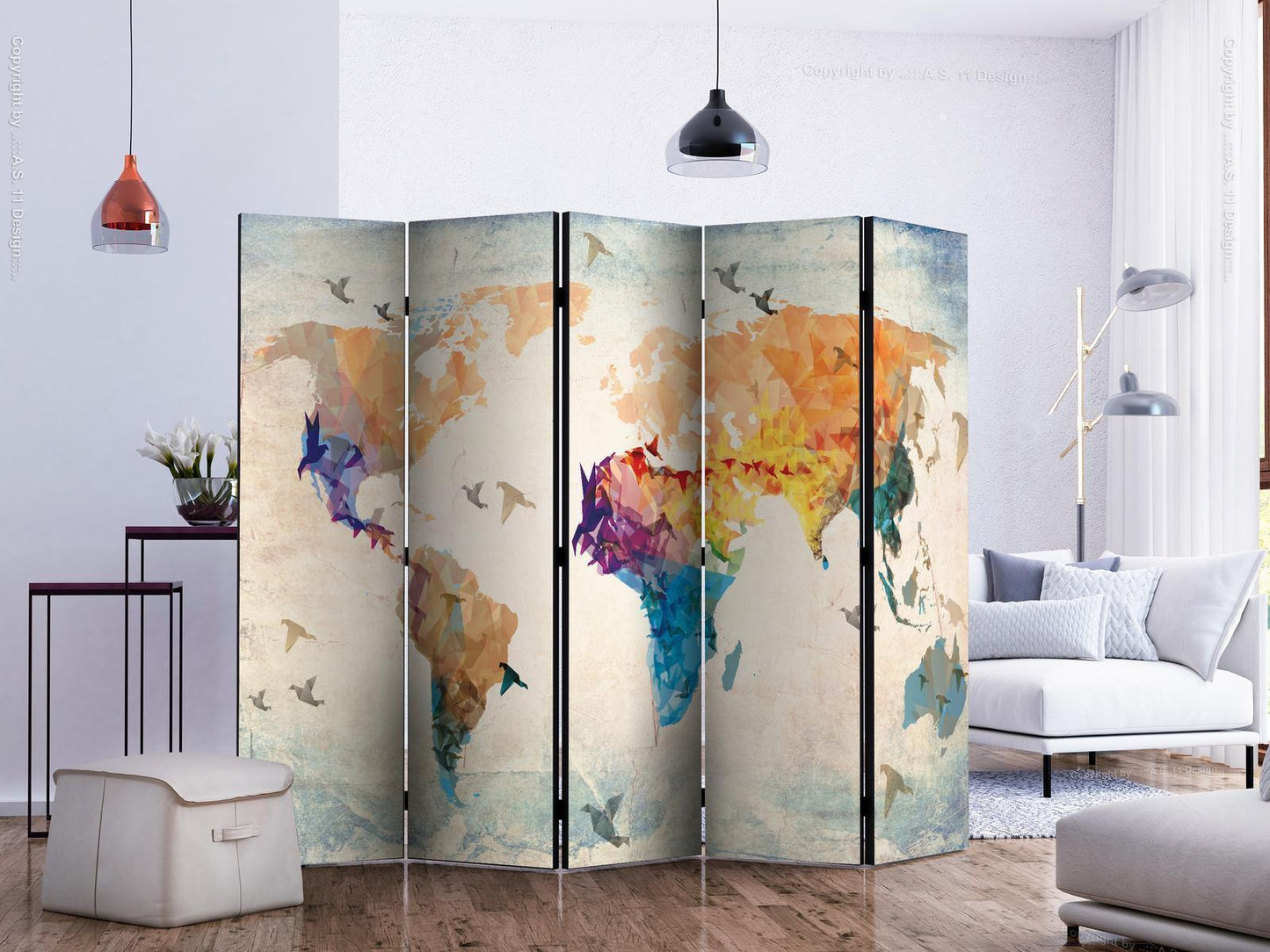 Die spanische Wand kann sowohl im Wohnzimmer, Schlafzimmer, Kinderzimmer, Badezimmer als auch in der Küche aufgestellt werden. Viele Büro-, Restaurant- und Clubbesitzer entscheiden sich häufig für diese dekorative Lösung in ihren Räumlichkeiten. Die spanische Wand "Paravent - Paper birds II" ist aus geruchsneutralen Materialien hergestellt, die sicher sind und daher keine Allergien auslösen. Es ist eine vielseitige Dekorationsmöglichkeit, die viele Vorteile hat. Der Hauptvorteil ist, dass diese Dekoration leicht zu bewegen ist, so dass sie schnell und einfach neu positioniert werden kann. Wichtig ist, dass die inneren Trennwände einen UV-Schutz haben, so dass die Farben auch im Laufe der Jahre intensiv bleiben. Der Raumteiler hat Designs, die die Einrichtung jedes Raumes ergänzen können.Details zur Produktsicherheit