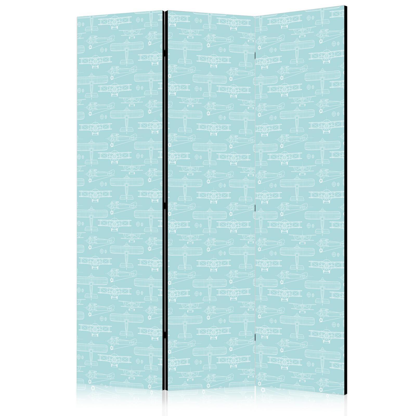 Paravent "Paravent - Sketch - Outline of an Airplane in White on a Turquoise Background"