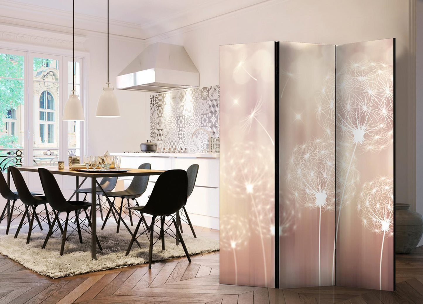 Unsere Raumteiler Paravents haben viele Vorteile. Zunächst einmal gibt es sie in verschiedenen Varianten, d.h. sie können aus drei oder fünf Teilen bestehen. Dank der Metallscharniere lässt sich diese Dekoration leicht zusammenfalten. Die Raumteiler stehen auf einem Sockel, der auch vor Beschädigungen schützt. Dieses dekorative Element besteht aus einer soliden Holzkonstruktion. Das Satinband sorgt für einen eleganten Abschluss und verstärkt die Seiten. Unsere Raumteiler sind aus Vliesstoff gefertigt, haben also eine feine Struktur und sind frei von sichtbaren Heftklammern. Es wurde auf jedes noch so kleine Detail geachtet, so dass diese Dekoration auch durch ihre Eleganz besticht. Wir haben hier also Funktionalität, Ästhetik und Eleganz – was will man mehr von einer Dekoration?Technische DetailsEinseitiger Paravent