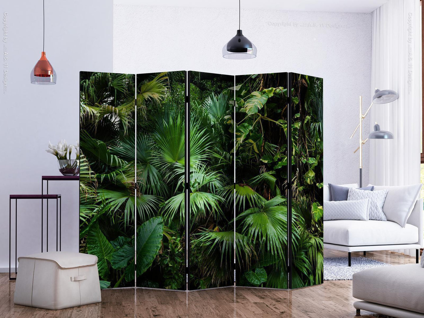 Die spanische Wand kann sowohl im Wohnzimmer, Schlafzimmer, Kinderzimmer, Badezimmer als auch in der Küche aufgestellt werden. Viele Büro-, Restaurant- und Clubbesitzer entscheiden sich häufig für diese dekorative Lösung in ihren Räumlichkeiten. Die spanische Wand "Paravent - Sunny Jungle II" ist aus geruchsneutralen Materialien hergestellt, die sicher sind und daher keine Allergien auslösen. Es ist eine vielseitige Dekorationsmöglichkeit, die viele Vorteile hat. Der Hauptvorteil ist, dass diese Dekoration leicht zu bewegen ist, so dass sie schnell und einfach neu positioniert werden kann. Wichtig ist, dass die inneren Trennwände einen UV-Schutz haben, so dass die Farben auch im Laufe der Jahre intensiv bleiben. Der Raumteiler hat Designs, die die Einrichtung jedes Raumes ergänzen können.Details zur Produktsicherheit