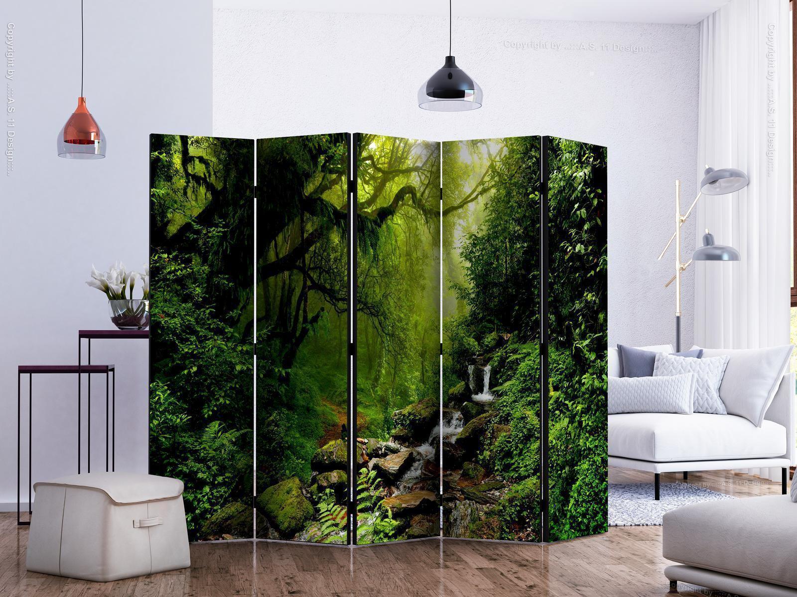 Die spanische Wand kann sowohl im Wohnzimmer, Schlafzimmer, Kinderzimmer, Badezimmer als auch in der Küche aufgestellt werden. Viele Büro-, Restaurant- und Clubbesitzer entscheiden sich häufig für diese dekorative Lösung in ihren Räumlichkeiten. Die spanische Wand "Paravent - The Fairytale Forest II" ist aus geruchsneutralen Materialien hergestellt, die sicher sind und daher keine Allergien auslösen. Es ist eine vielseitige Dekorationsmöglichkeit, die viele Vorteile hat. Der Hauptvorteil ist, dass diese Dekoration leicht zu bewegen ist, so dass sie schnell und einfach neu positioniert werden kann. Wichtig ist, dass die inneren Trennwände einen UV-Schutz haben, so dass die Farben auch im Laufe der Jahre intensiv bleiben. Der Raumteiler hat Designs, die die Einrichtung jedes Raumes ergänzen können.Details zur Produktsicherheit