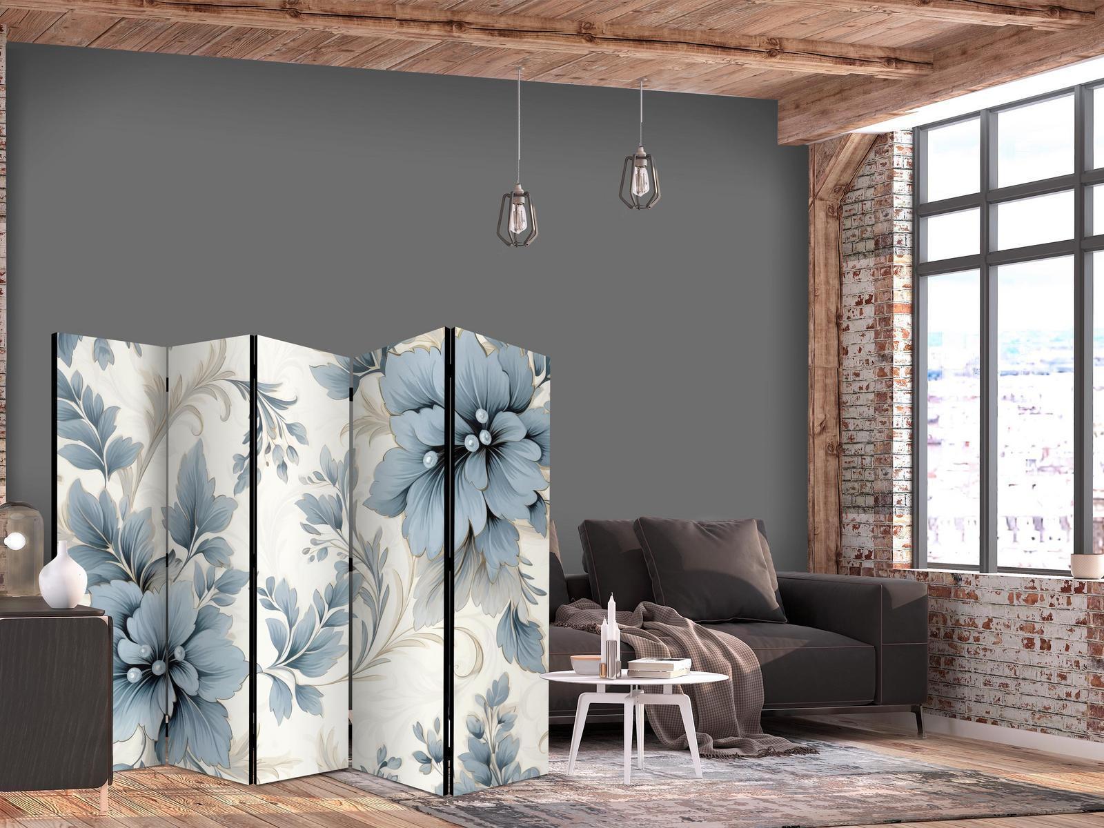 Paravent - Turquoise Flowers in Retro Vibe Floral Ornaments