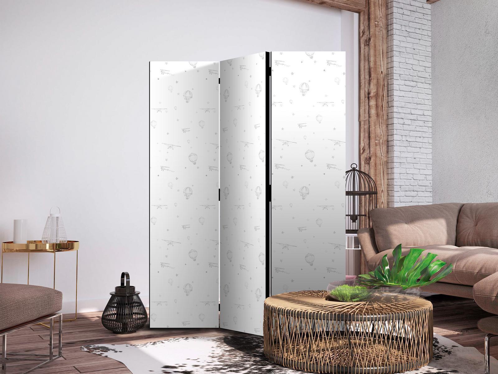 Paravents sind hervorragende Dekorationselemente, die auf vielfältige Weise eingesetzt werden können. Sie verbinden perfekt Funktionalität und originelle Ästhetik. Aus diesem Grund sind sie sehr beliebt. Der Hauptvorteil ist, dass diese Dekoration einen Raum unterteilen kann, ohne dass Renovierungsarbeiten erforderlich sind. Im Folgenden finden Sie die Vorteile dieses Gestaltungselements – lassen Sie sich davon für Ihre Einrichtung inspirieren. Sie können die Paravents aus unserem Sortiment in drei Varianten kaufen, und jede von ihnen erfüllt eine interessante Funktion: Paravent – einseitig bedruckt, Paravent – doppelseitig bedruckt, Akustischer Paravent. Dies ist ein klarer Beweis dafür, dass die Trennwände auch sehr nützlich sind. Viele Menschen verwenden sie zum Beispiel, um einen Raum optisch zu unterteilen oder einen Teil davon zu verbergen. Der Raumtrenner ist auch häufig in Wirtschaftsräumen zu finden, zum Beispiel in einem Friseursalon, einem Boutique oder einer Arztpraxis. Jeder schätzt die Ästhetik und den praktischen Nutzen dieser Dekoration. Mit Raumteiler Paravent "Paravent - Watercolor - Airplanes and Balloons Painted on a White Sky Background" können Sie Räume in Zonen aufteilen – das Schlafzimmer in Schlaf- und Garderobenbereiche, das Wohnzimmer in Sitz- und Essbereiche. Gestalten Sie Ihre Home-Office-Ecke und grenzen Sie den Bürobereich im Wohnzimmer mit einem stilvollen Raumteiler ab. Wie Sie es verwenden, hängt von Ihrer Phantasie, Ihren Bedürfnissen und Vorlieben ab.