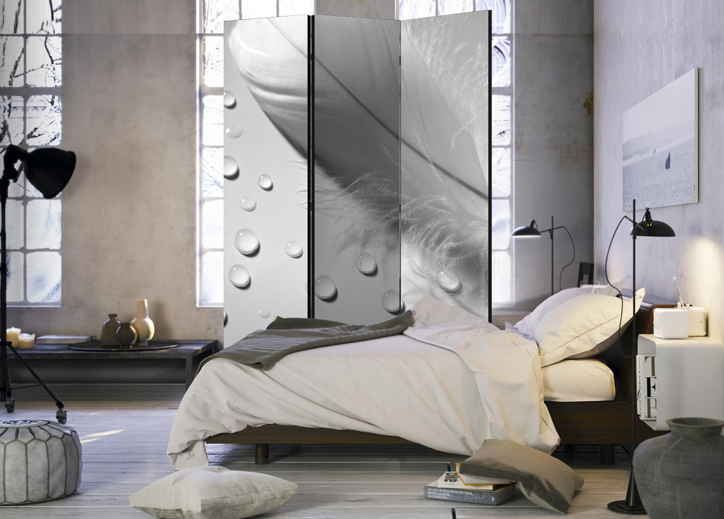 Paravents sind hervorragende Dekorationselemente, die auf vielfältige Weise eingesetzt werden können. Sie verbinden perfekt Funktionalität und originelle Ästhetik. Aus diesem Grund sind sie sehr beliebt. Der Hauptvorteil ist, dass diese Dekoration einen Raum unterteilen kann, ohne dass Renovierungsarbeiten erforderlich sind. Im Folgenden finden Sie die Vorteile dieses Gestaltungselements – lassen Sie sich davon für Ihre Einrichtung inspirieren. Sie können die Paravents aus unserem Sortiment in drei Varianten kaufen, und jede von ihnen erfüllt eine interessante Funktion: Paravent – einseitig bedruckt, Paravent – doppelseitig bedruckt, Akustischer Paravent. Dies ist ein klarer Beweis dafür, dass die Trennwände auch sehr nützlich sind. Viele Menschen verwenden sie zum Beispiel, um einen Raum optisch zu unterteilen oder einen Teil davon zu verbergen. Der Raumtrenner ist auch häufig in Wirtschaftsräumen zu finden, zum Beispiel in einem Friseursalon, einem Boutique oder einer Arztpraxis. Jeder schätzt die Ästhetik und den praktischen Nutzen dieser Dekoration. Mit Raumteiler Paravent "Paravent - White Feather" können Sie Räume in Zonen aufteilen – das Schlafzimmer in Schlaf- und Garderobenbereiche, das Wohnzimmer in Sitz- und Essbereiche. Gestalten Sie Ihre Home-Office-Ecke und grenzen Sie den Bürobereich im Wohnzimmer mit einem stilvollen Raumteiler ab. Wie Sie es verwenden, hängt von Ihrer Phantasie, Ihren Bedürfnissen und Vorlieben ab.