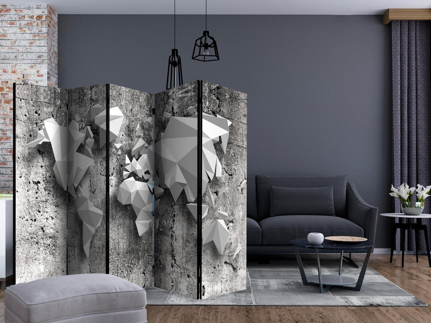 Paravents sind hervorragende Dekorationselemente, die auf vielfältige Weise eingesetzt werden können. Sie verbinden perfekt Funktionalität und originelle Ästhetik. Aus diesem Grund sind sie sehr beliebt. Der Hauptvorteil ist, dass diese Dekoration einen Raum unterteilen kann, ohne dass Renovierungsarbeiten erforderlich sind. Im Folgenden finden Sie die Vorteile dieses Gestaltungselements – lassen Sie sich davon für Ihre Einrichtung inspirieren. Sie können die Paravents aus unserem Sortiment in drei Varianten kaufen, und jede von ihnen erfüllt eine interessante Funktion: Paravent – einseitig bedruckt, Paravent – doppelseitig bedruckt, Akustischer Paravent. Dies ist ein klarer Beweis dafür, dass die Trennwände auch sehr nützlich sind. Viele Menschen verwenden sie zum Beispiel, um einen Raum optisch zu unterteilen oder einen Teil davon zu verbergen. Der Raumtrenner ist auch häufig in Wirtschaftsräumen zu finden, zum Beispiel in einem Friseursalon, einem Boutique oder einer Arztpraxis. Jeder schätzt die Ästhetik und den praktischen Nutzen dieser Dekoration. Mit Raumteiler Paravent "Paravent - World Map: Origami II" können Sie Räume in Zonen aufteilen – das Schlafzimmer in Schlaf- und Garderobenbereiche, das Wohnzimmer in Sitz- und Essbereiche. Gestalten Sie Ihre Home-Office-Ecke und grenzen Sie den Bürobereich im Wohnzimmer mit einem stilvollen Raumteiler ab. Wie Sie es verwenden, hängt von Ihrer Phantasie, Ihren Bedürfnissen und Vorlieben ab.