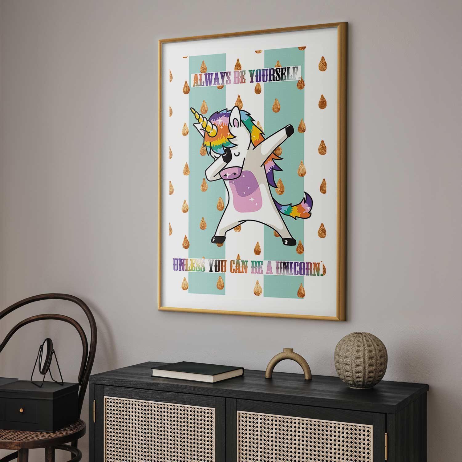 Sorgfalt und Präzision sind der Schlüssel zur Qualität unserer Produkte, daher ist "Poster - Always Be Yourself" eine ausgezeichnete Wahl. "Poster - Always Be Yourself" wird auf Bestellung auf dickem Papier mit einer Grammatur von 250 g/m² hergestellt. Wir verwenden die Full-HD-Druck- und UV-Safe-Technologie, die Bildschärfe gewährleistet und die Farben vor dem Verblassen schützt, auch bei langer Sonneneinstrahlung. Sowohl die Poster selbst als auch die Rahmen bestehen aus sicheren und geruchsneutralen Materialien und eignen sich für jeden Raum, auch für das Schlafzimmer oder Kinderzimmer. Unabhängig vom Motiv oder Muster wird jedes Poster mit größter Sorgfalt hergestellt. Eine Qualitätskontrolle vor dem Versand garantiert, dass Ihre Poster über viele Jahre hinweg großartig aussehen werden.Lassen Sie die Wände Ihre Geschichte erzählen!Details zur Produktsicherheit