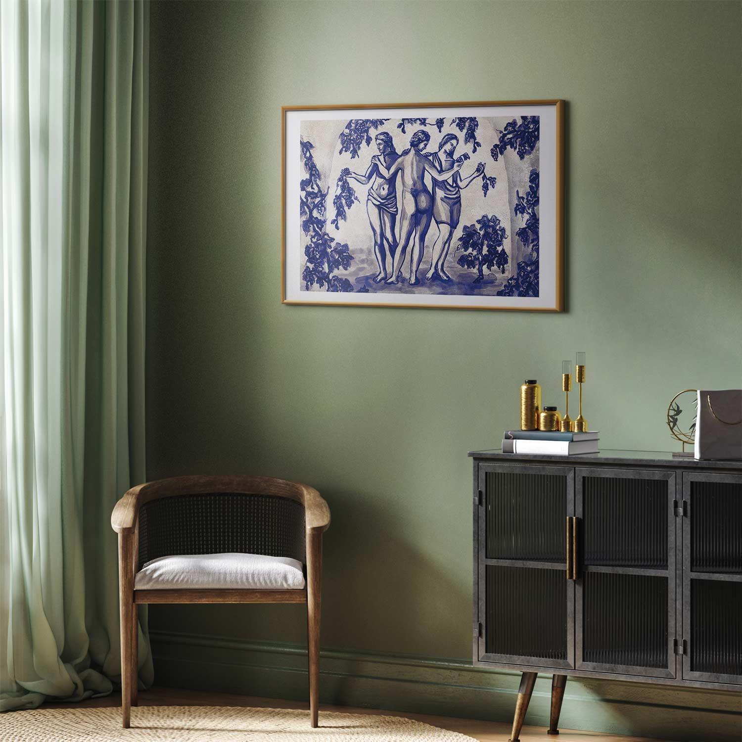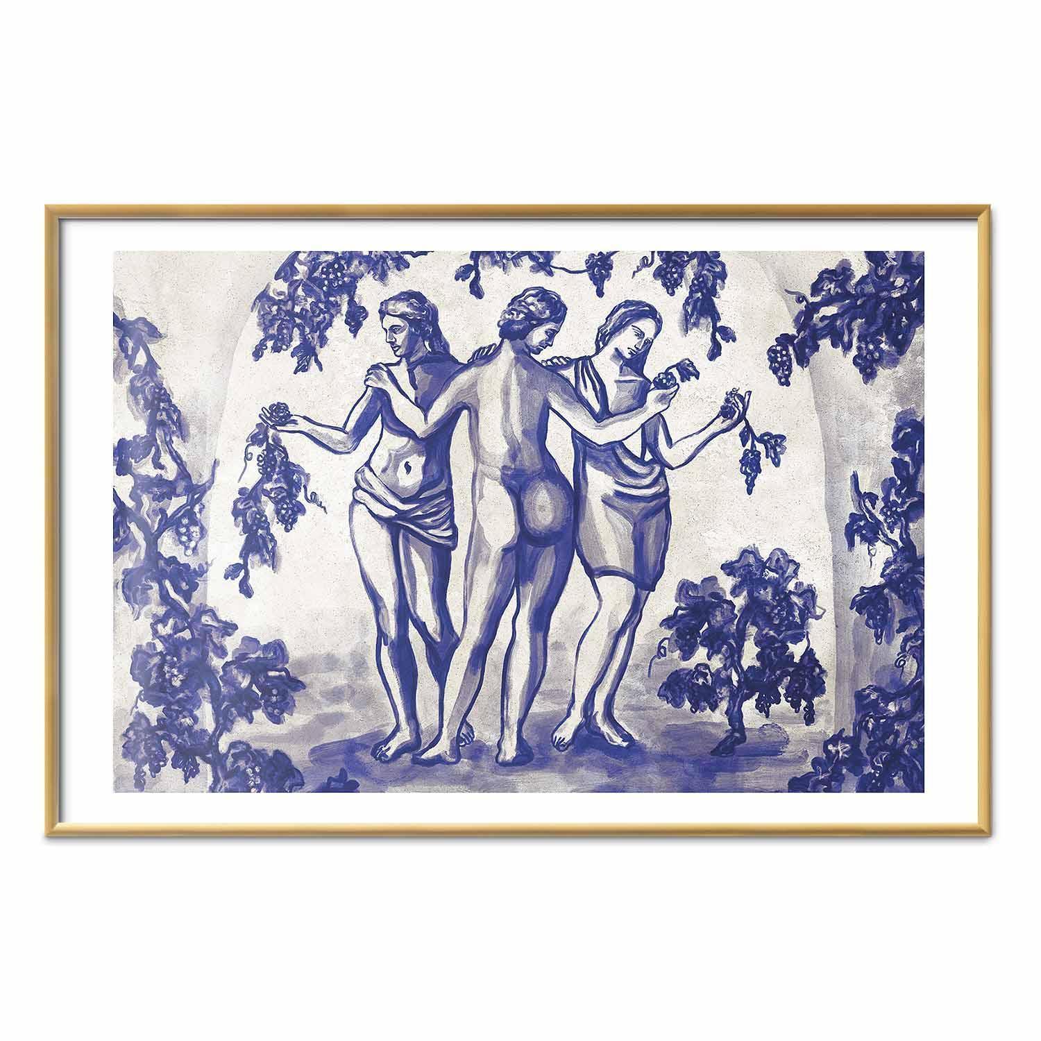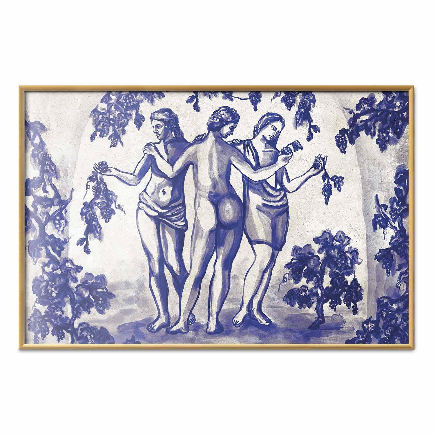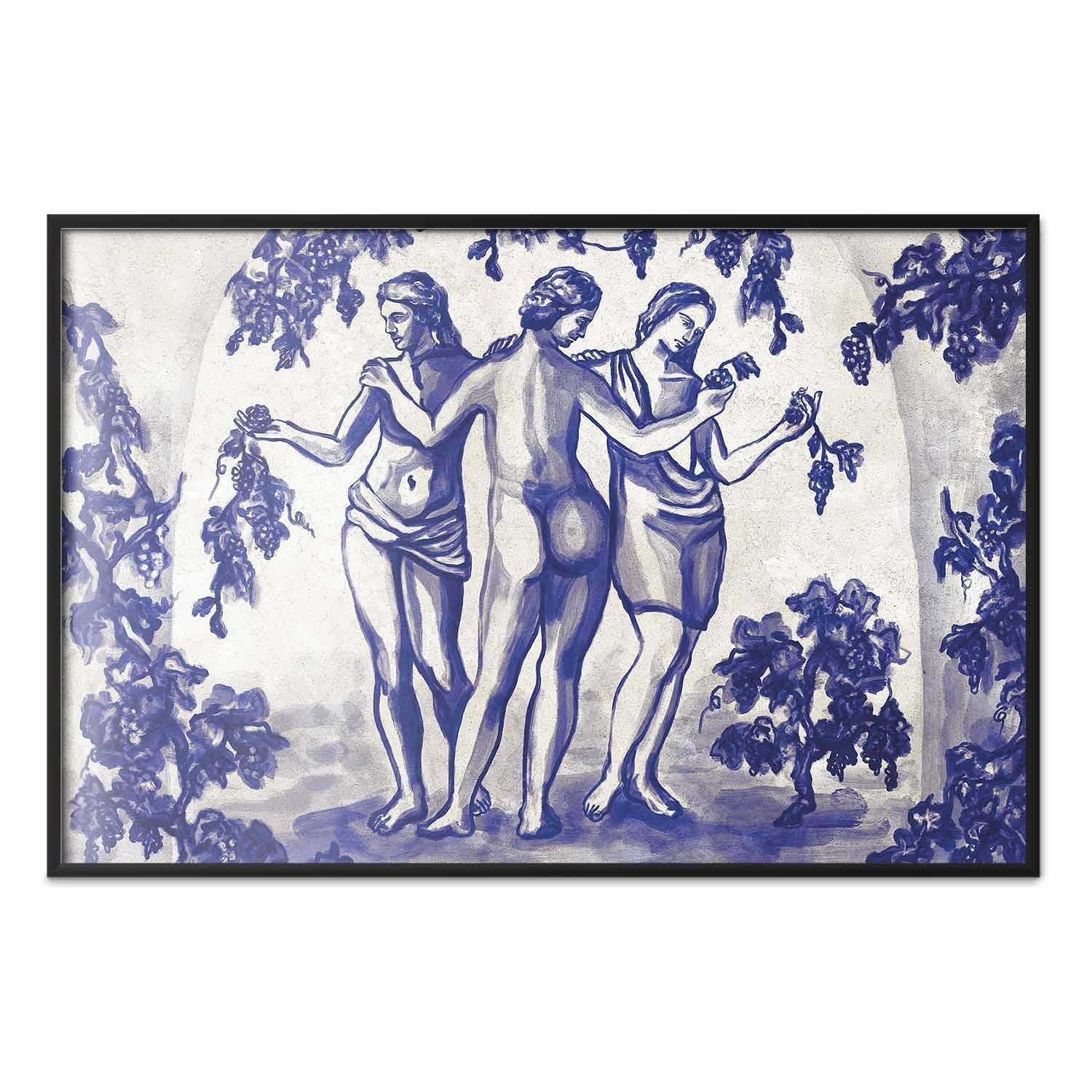 Poster - Ancient Vineyard - three women in a portal painted in blue ink