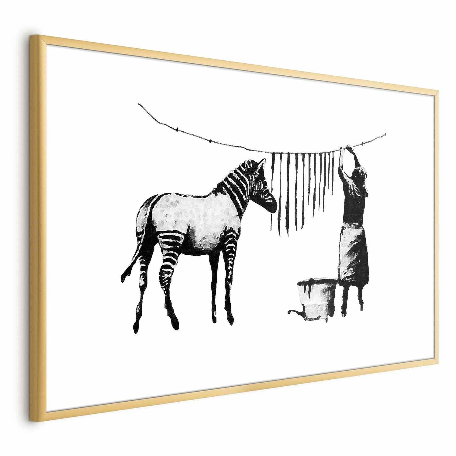 Sorgfalt und Präzision sind der Schlüssel zur Qualität unserer Produkte, daher ist "Poster - Banksy: Zebra Washing" eine ausgezeichnete Wahl. "Poster - Banksy: Zebra Washing" wird auf Bestellung auf dickem Papier mit einer Grammatur von 250 g/m² hergestellt. Wir verwenden die Full-HD-Druck- und UV-Safe-Technologie, die Bildschärfe gewährleistet und die Farben vor dem Verblassen schützt, auch bei langer Sonneneinstrahlung. Sowohl die Poster selbst als auch die Rahmen bestehen aus sicheren und geruchsneutralen Materialien und eignen sich für jeden Raum, auch für das Schlafzimmer oder Kinderzimmer. Unabhängig vom Motiv oder Muster wird jedes Poster mit größter Sorgfalt hergestellt. Eine Qualitätskontrolle vor dem Versand garantiert, dass Ihre Poster über viele Jahre hinweg großartig aussehen werden.Lassen Sie die Wände Ihre Geschichte erzählen!Details zur Produktsicherheit