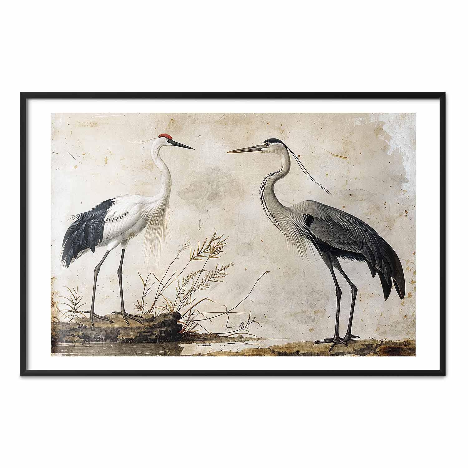 Poster - Birds from an Old Engraving - vintage-style illustration of a heron and a crane
