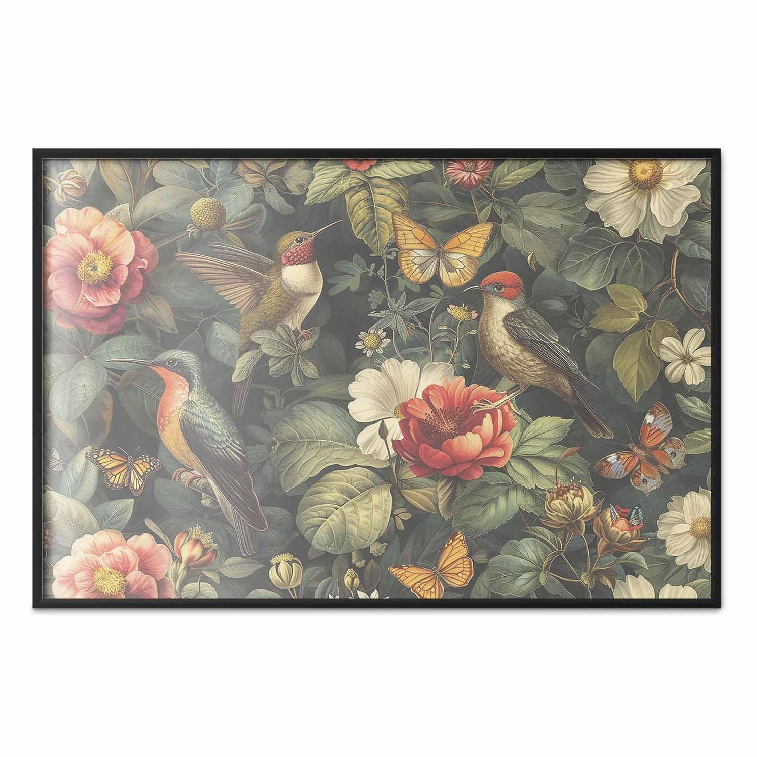 Poster - Flowers, Birds, and Butterflies - vintage-style illustration