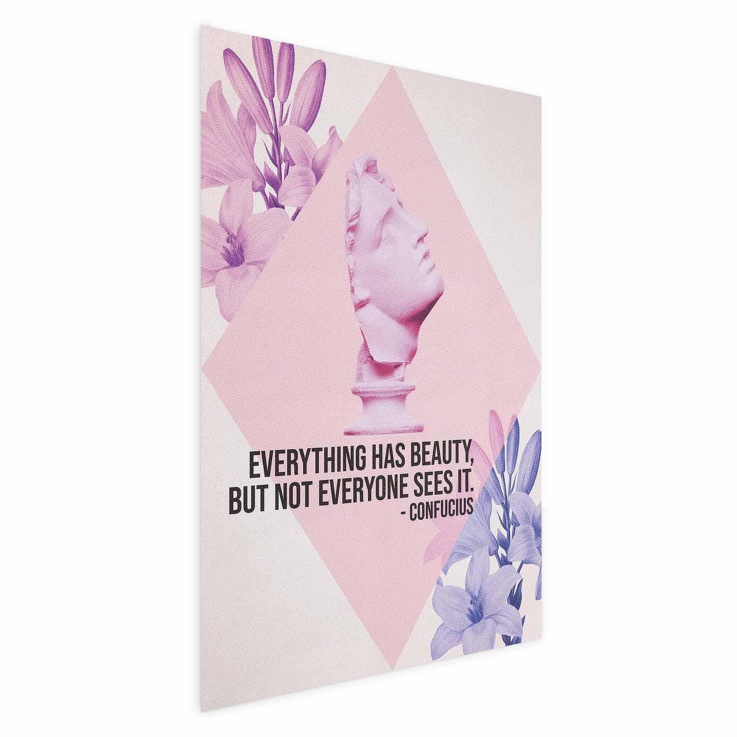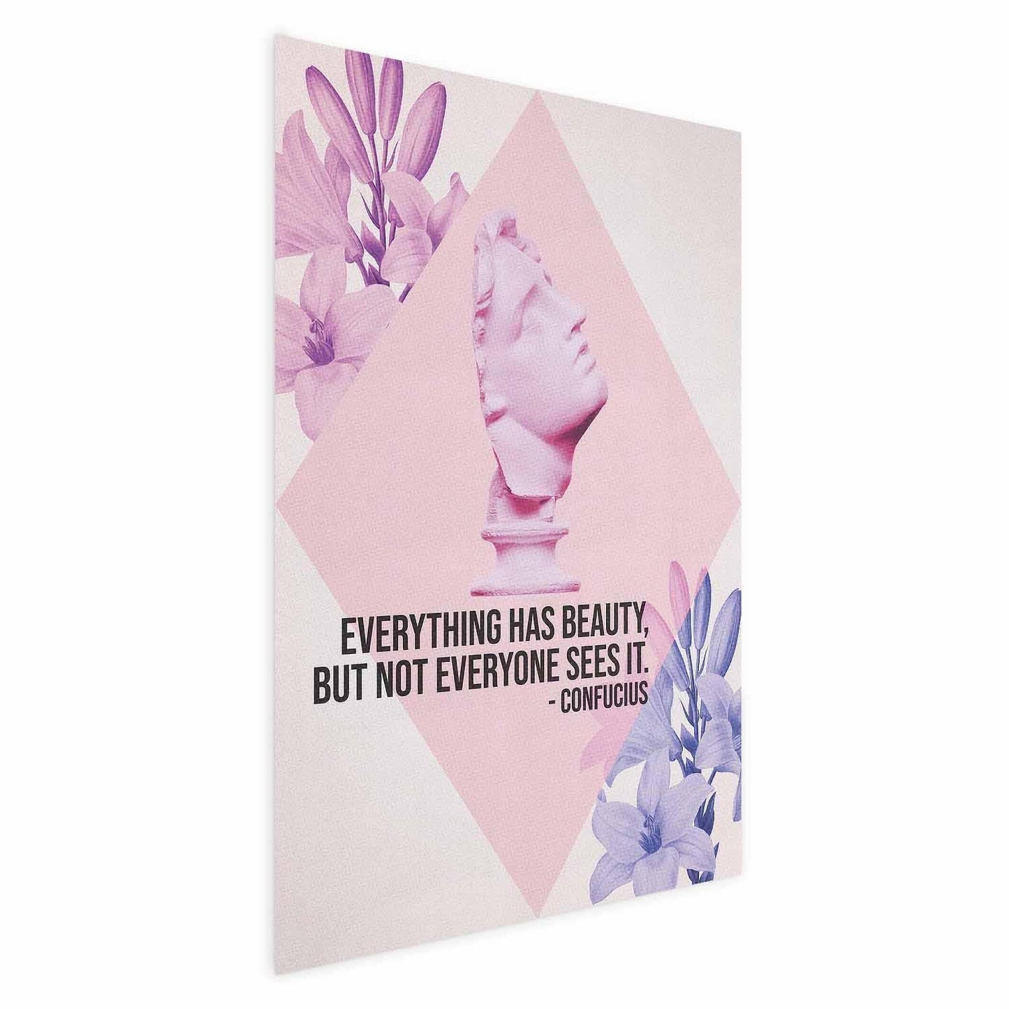 Poster - Confucius on Beauty - a bust in pink with flowers and a quote