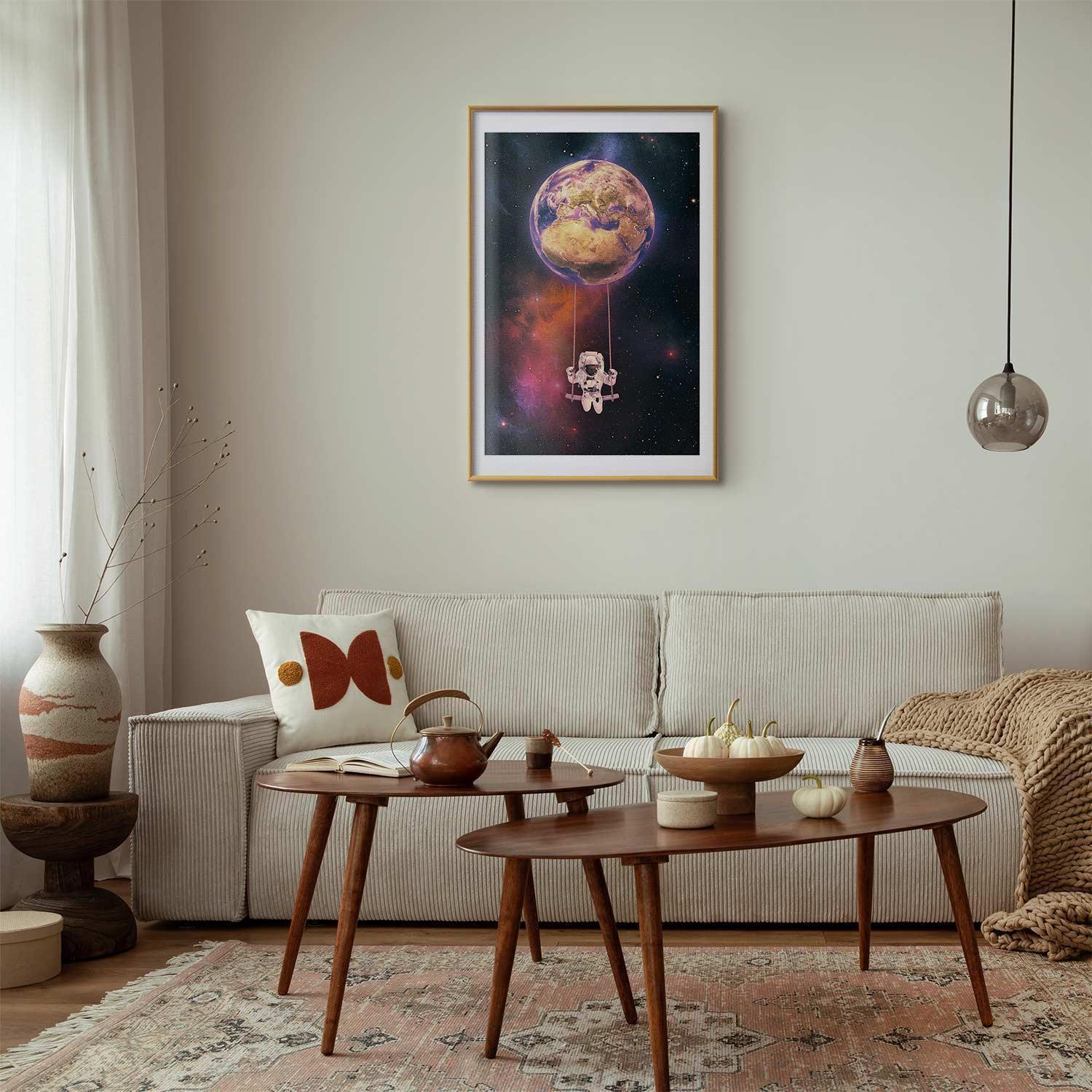 Sorgfalt und Präzision sind der Schlüssel zur Qualität unserer Produkte, daher ist "Poster - Cosmic Swing" eine ausgezeichnete Wahl. "Poster - Cosmic Swing" wird auf Bestellung auf dickem Papier mit einer Grammatur von 250 g/m² hergestellt. Wir verwenden die Full-HD-Druck- und UV-Safe-Technologie, die Bildschärfe gewährleistet und die Farben vor dem Verblassen schützt, auch bei langer Sonneneinstrahlung. Sowohl die Poster selbst als auch die Rahmen bestehen aus sicheren und geruchsneutralen Materialien und eignen sich für jeden Raum, auch für das Schlafzimmer oder Kinderzimmer. Unabhängig vom Motiv oder Muster wird jedes Poster mit größter Sorgfalt hergestellt. Eine Qualitätskontrolle vor dem Versand garantiert, dass Ihre Poster über viele Jahre hinweg großartig aussehen werden.Lassen Sie die Wände Ihre Geschichte erzählen!Details zur Produktsicherheit