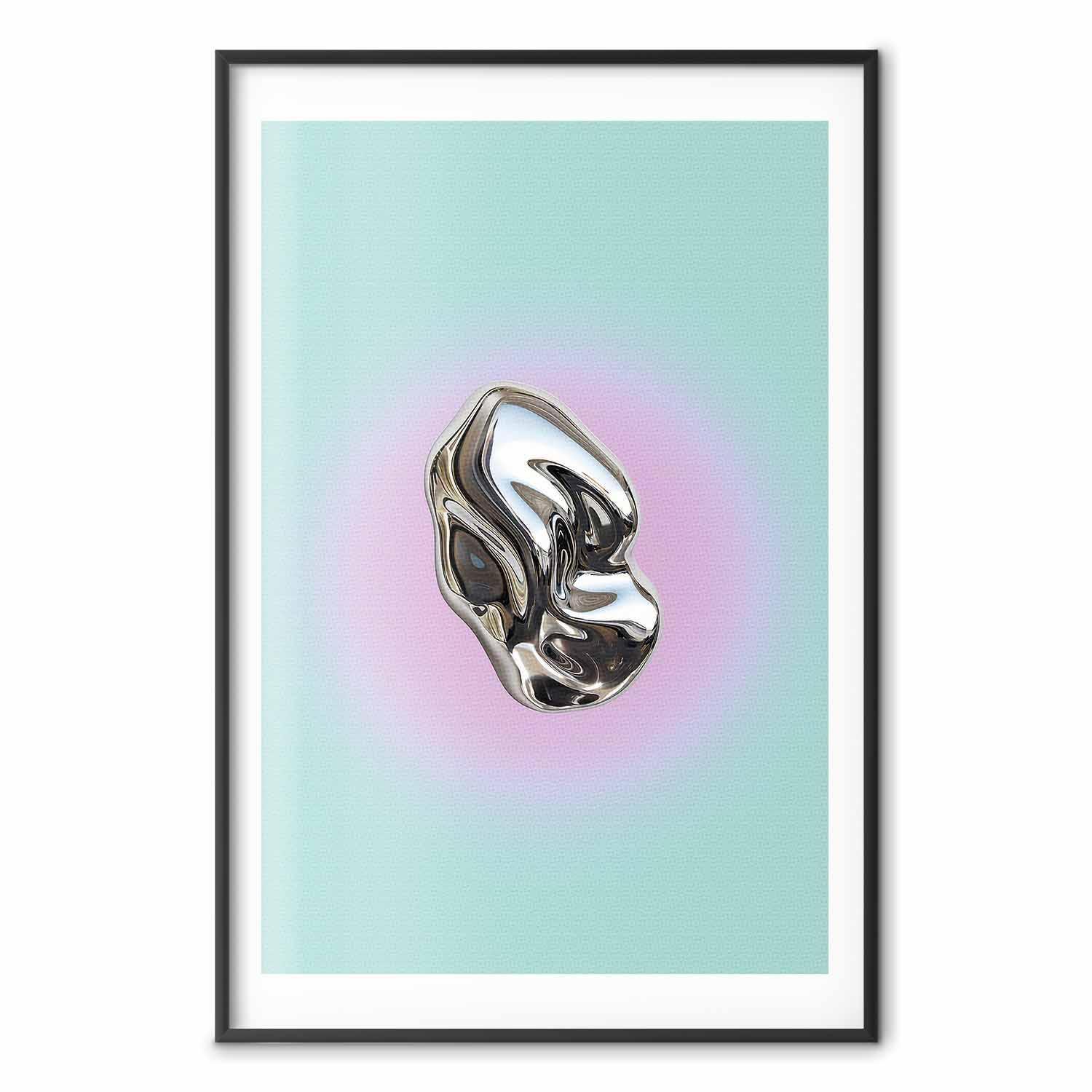 Poster - Metallic Form - abstract sculpture on a mint background with a purple halo