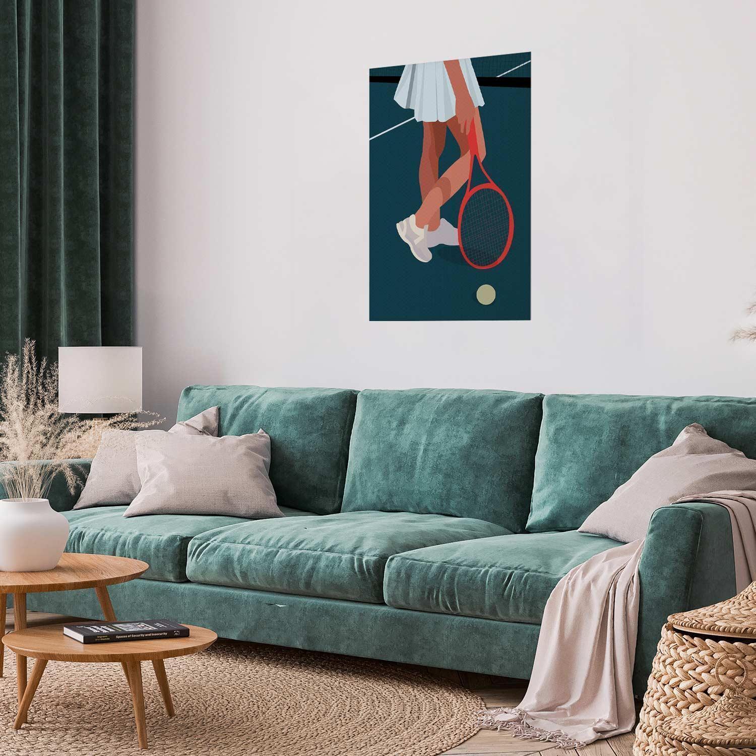 Poster - Tennis Player with a Red Racket on the Court - Illustration